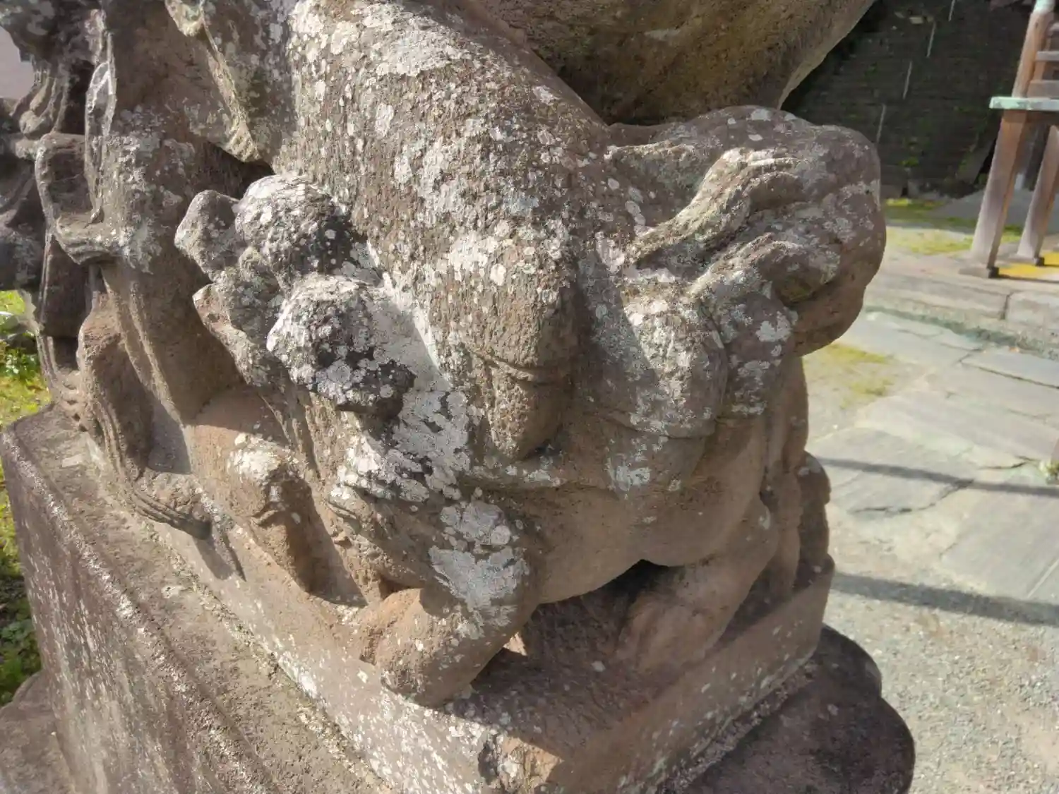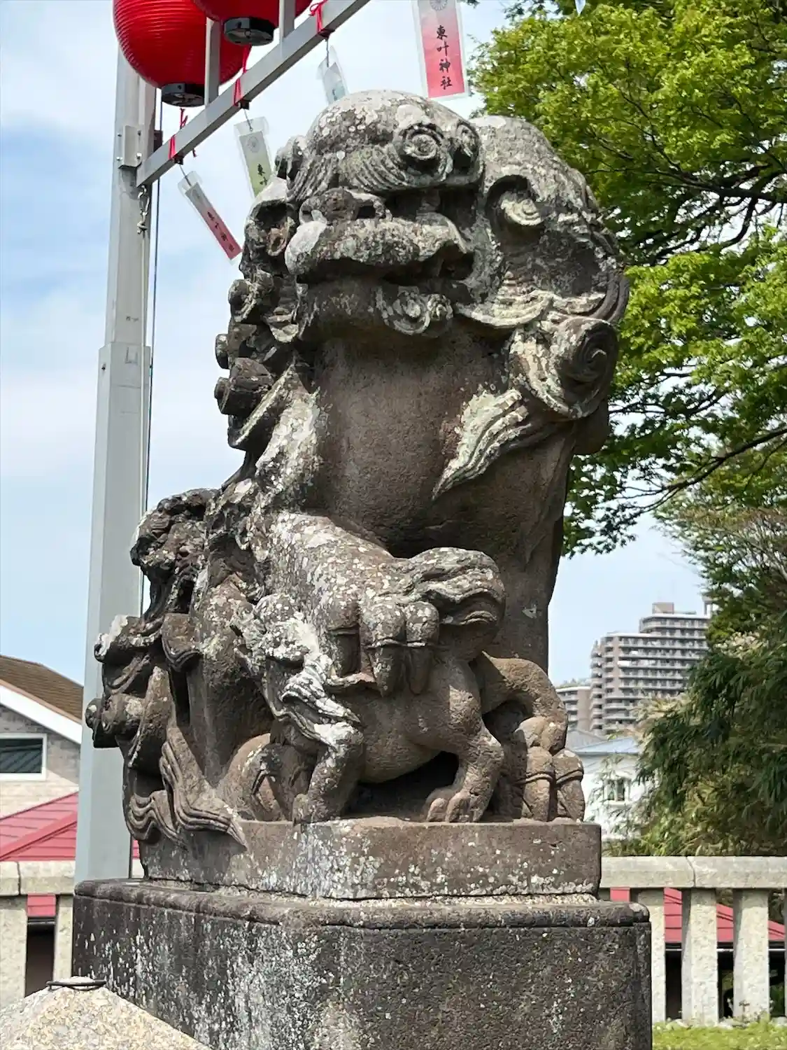 向かって右側の狛犬には子どもの狛犬がおっぱいを飲んでる「乳のみ狛犬…