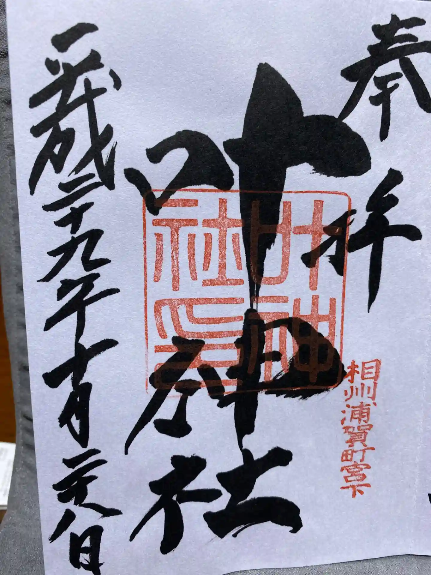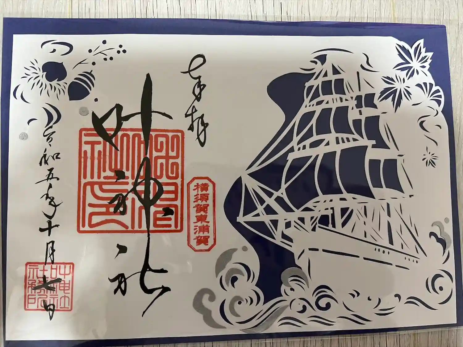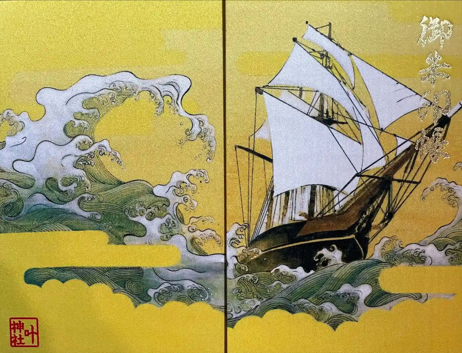 西岸叶神社のはさみ紙同様、ポンポン船(浦賀の渡し)が描かれていますね。
