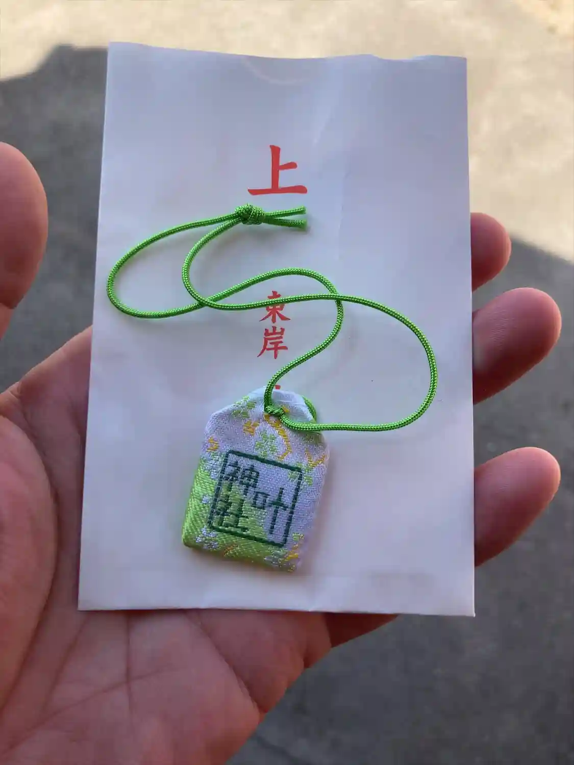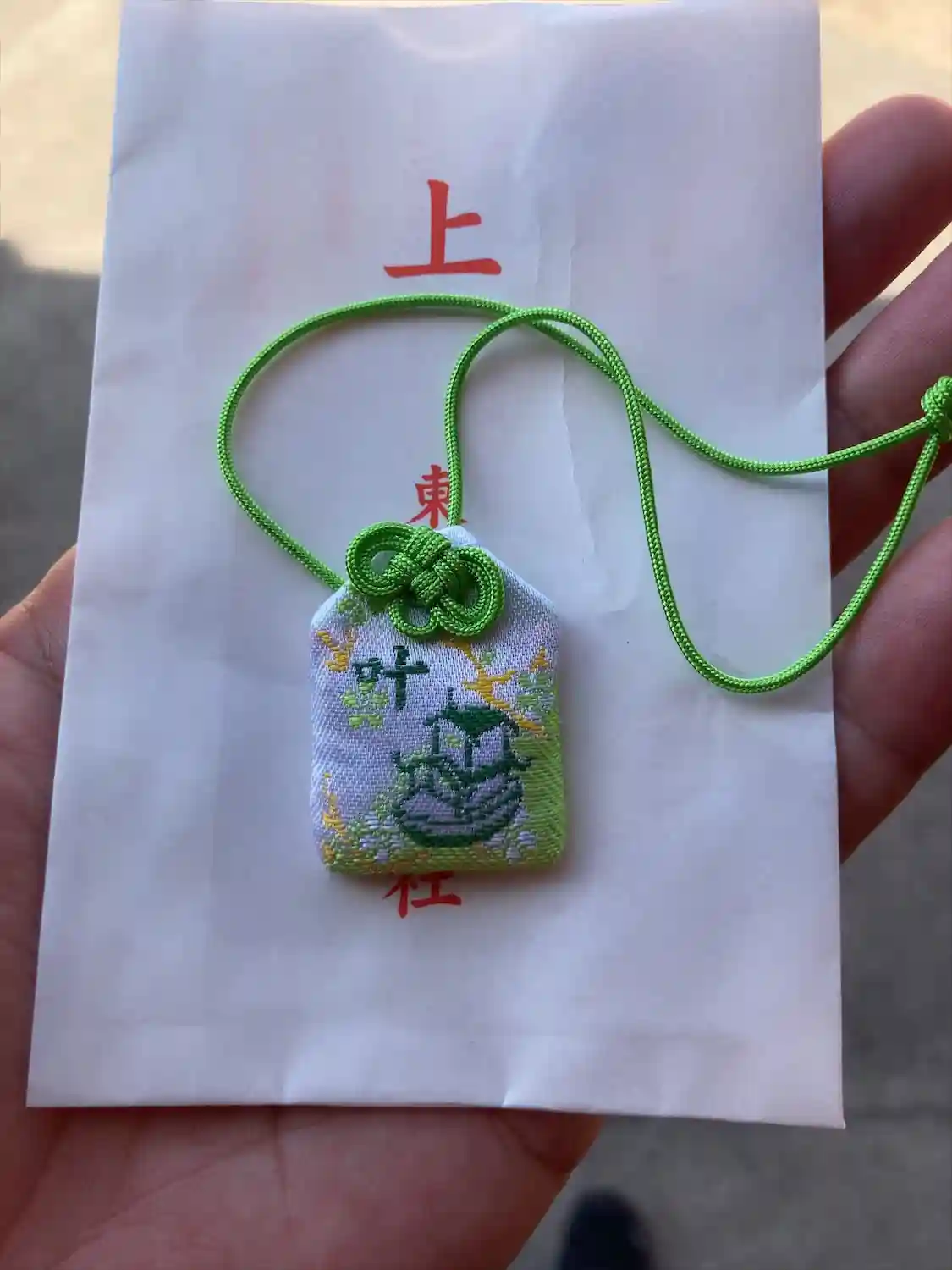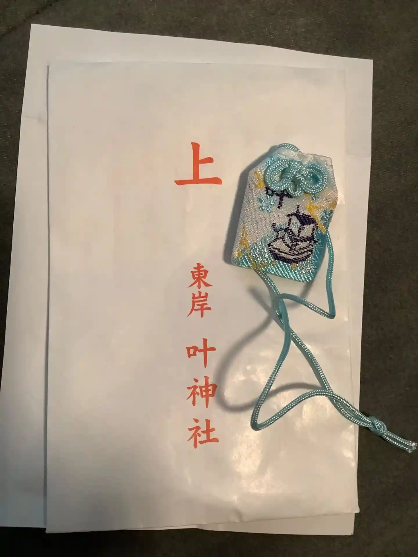 西叶神社でいただいた勾玉を入れる袋を買って、御守り完成〜♪