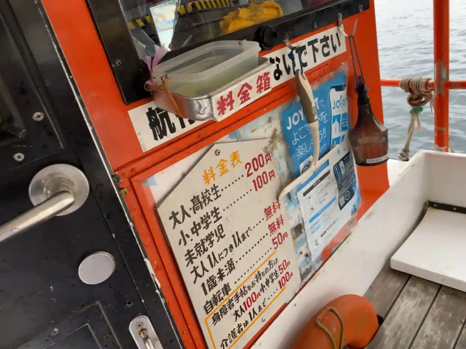 乗ったら料金箱に200円入れます。