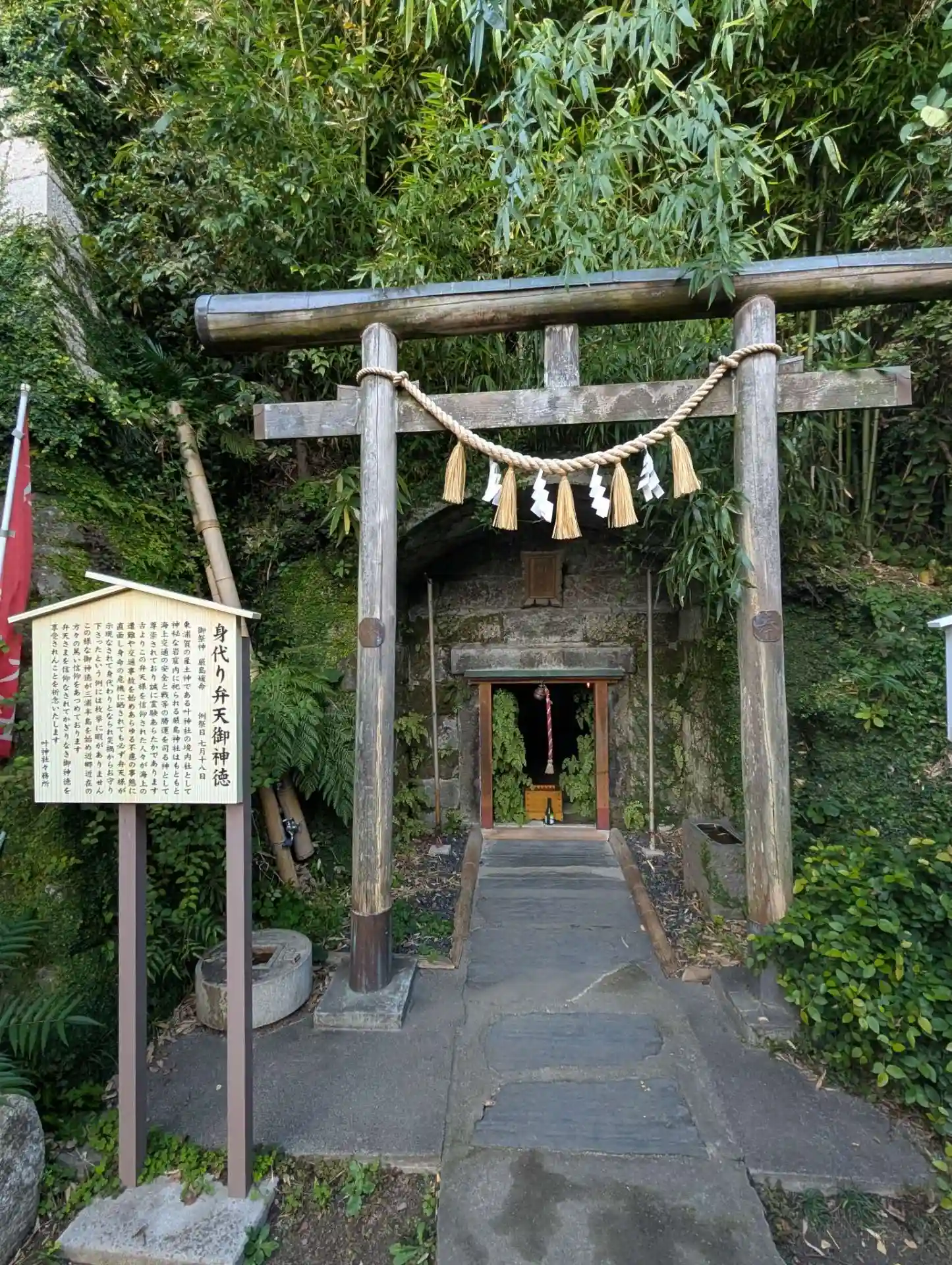 境内には、岩窟内に祀られる身代り弁天社があり神秘的な雰囲気です。