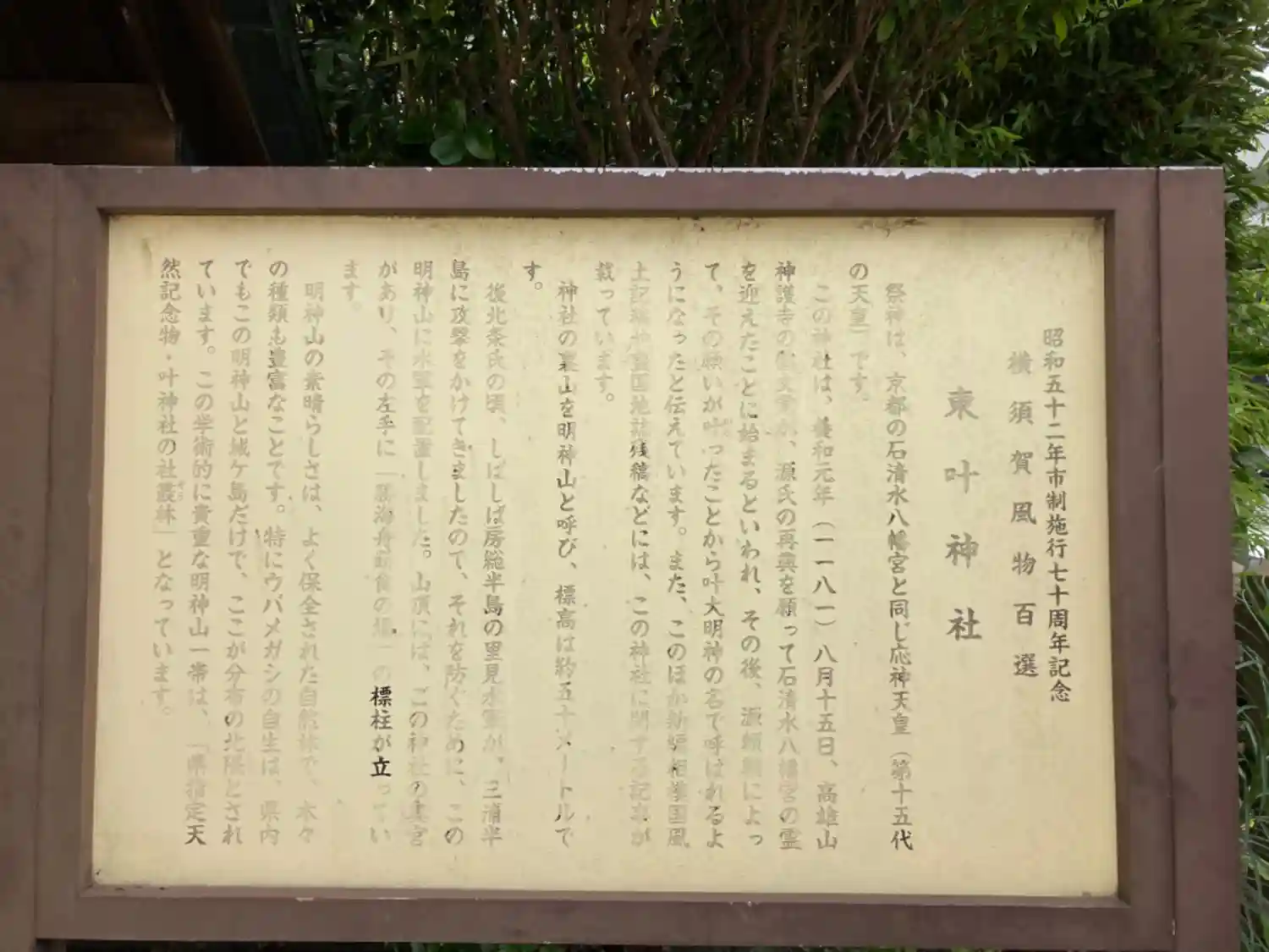 叶神社は浦賀湾を挟んで東西に建てられています。