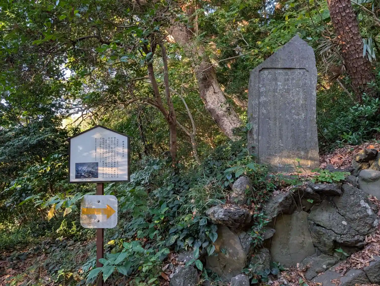 身代り弁天社の数歩手前で ’ 柱状節理 ’ を模したような?塚に鎮座する、