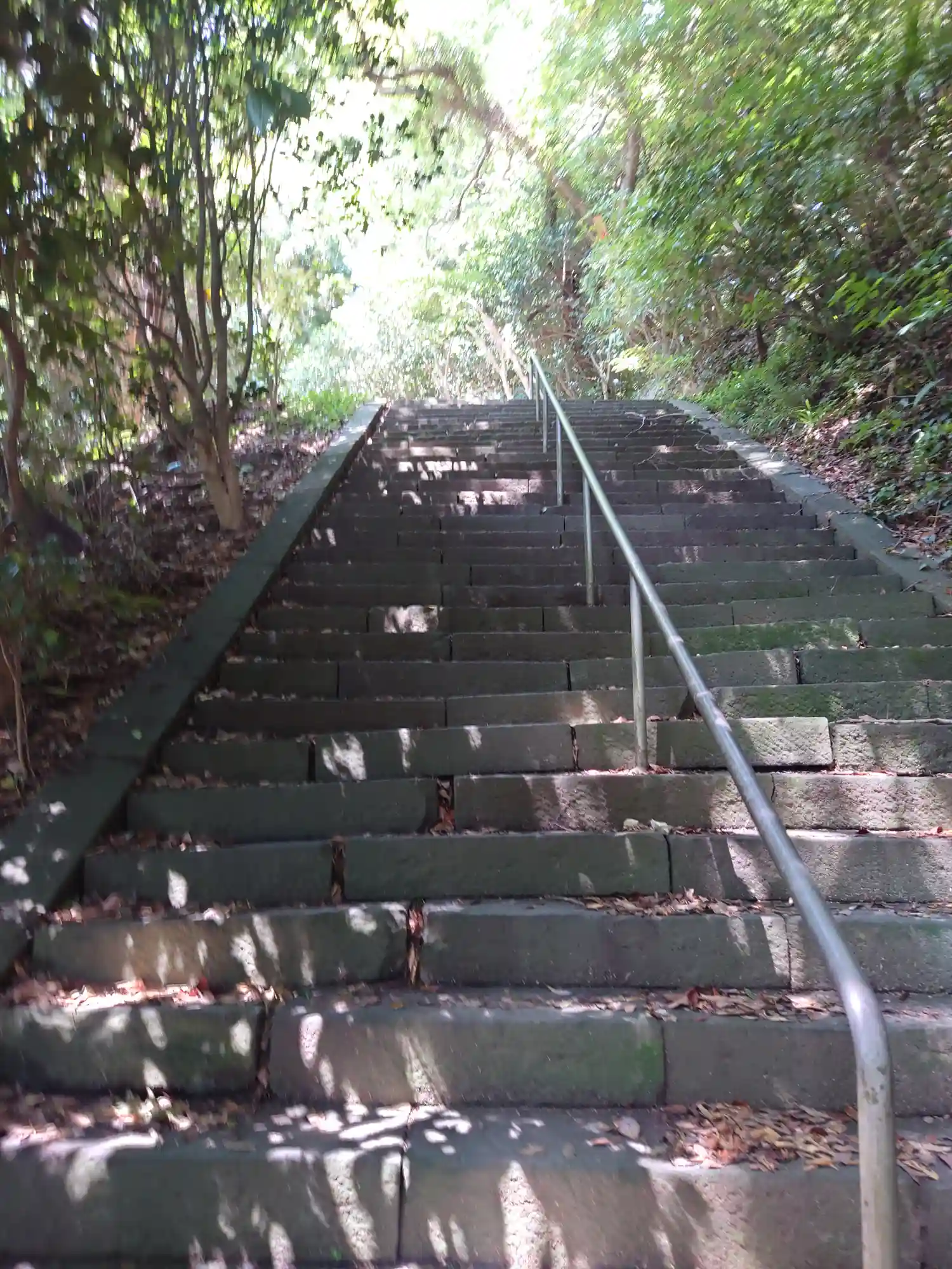 14) 三つめの階段から、写真奥下方で 二つ目の階段を見下ろす。