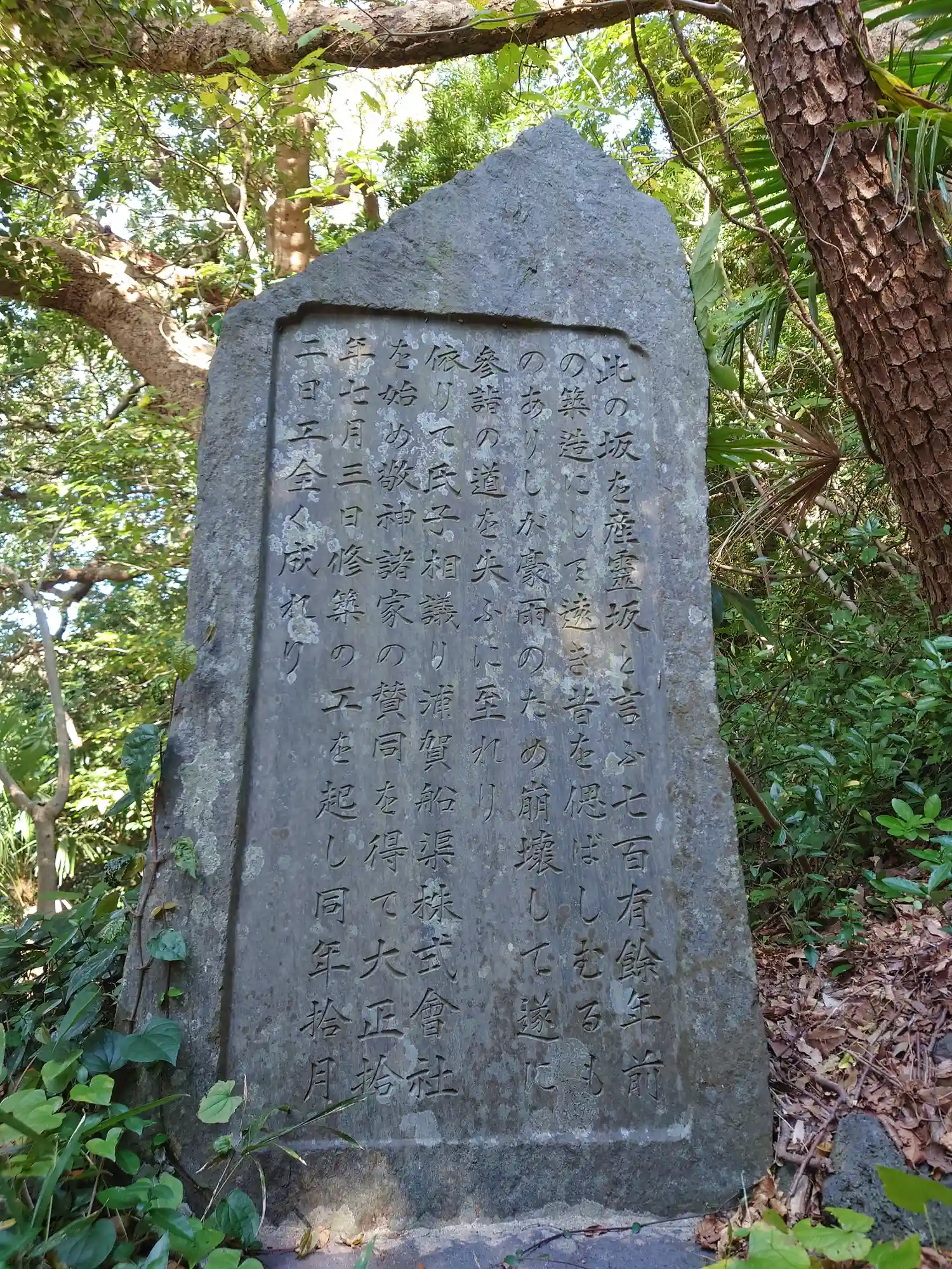 11-1) 社殿が鎮座する境内左端、” 惠仁志坂 ” と彫られた石標。14:11pm頃
