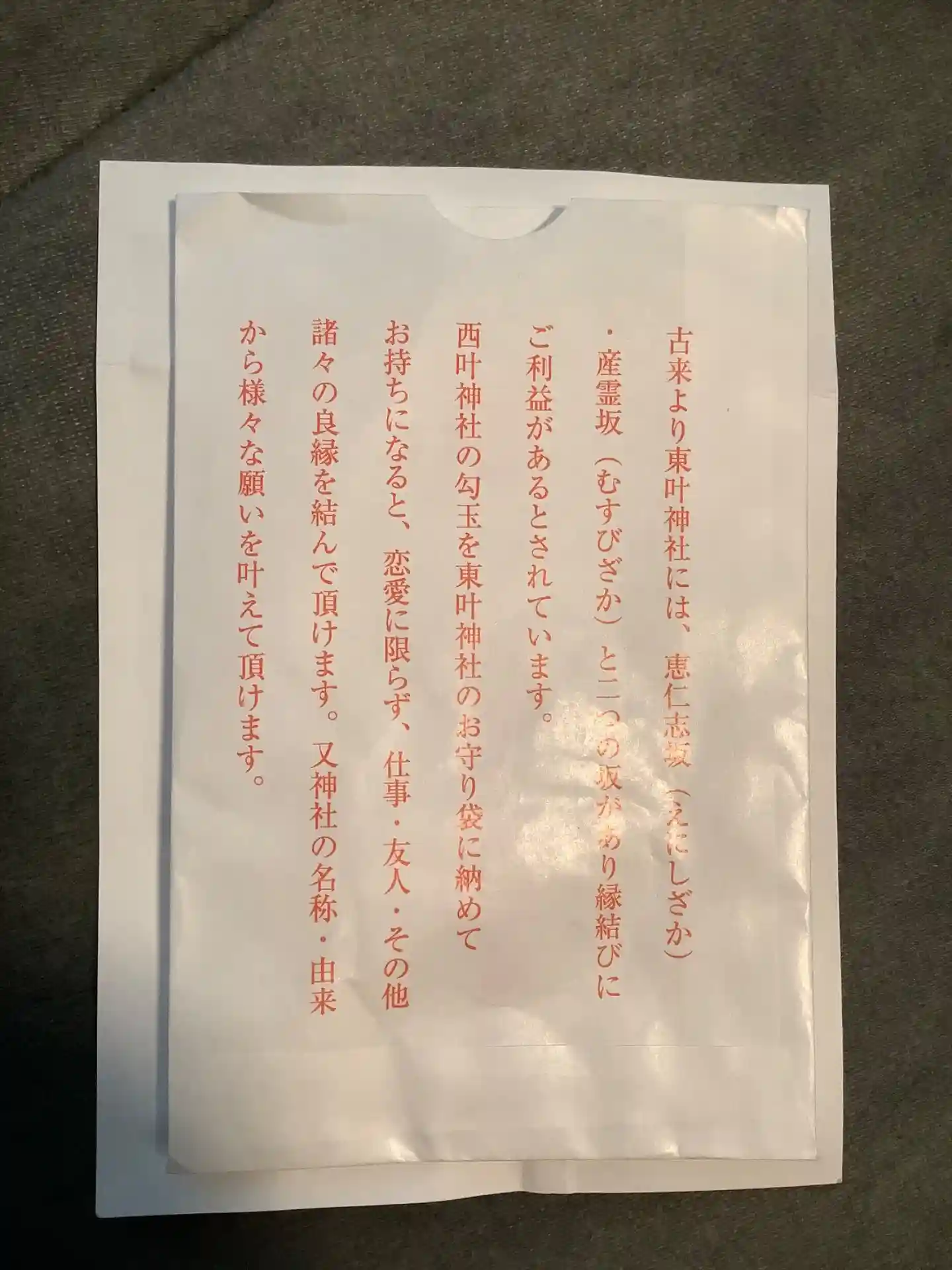 西叶神社で勾玉を頂いて袋にしまって願いを叶えましょう