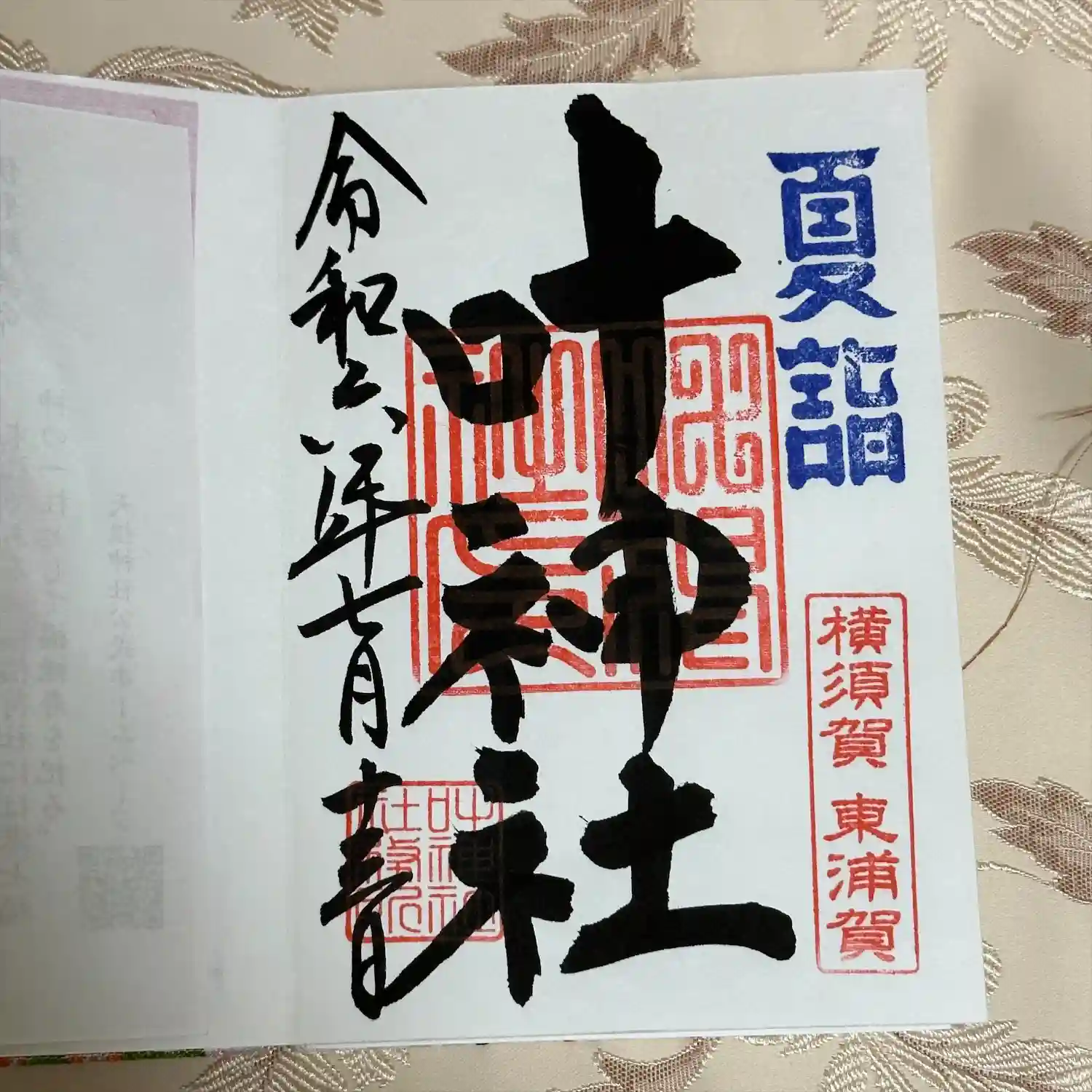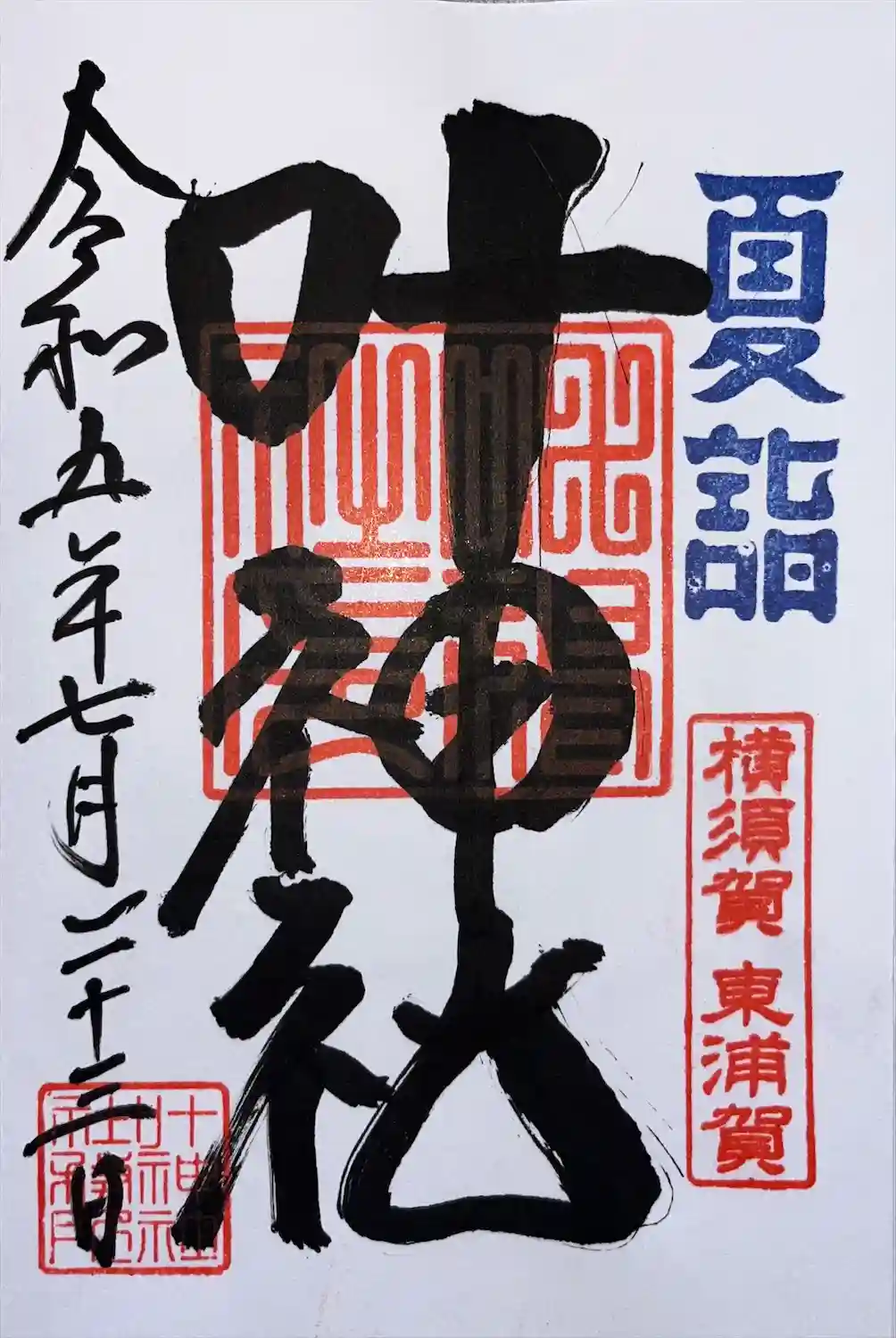 東岸叶神社の夏詣御朱印を、御朱印帳への書入れにて拝受いたしました。