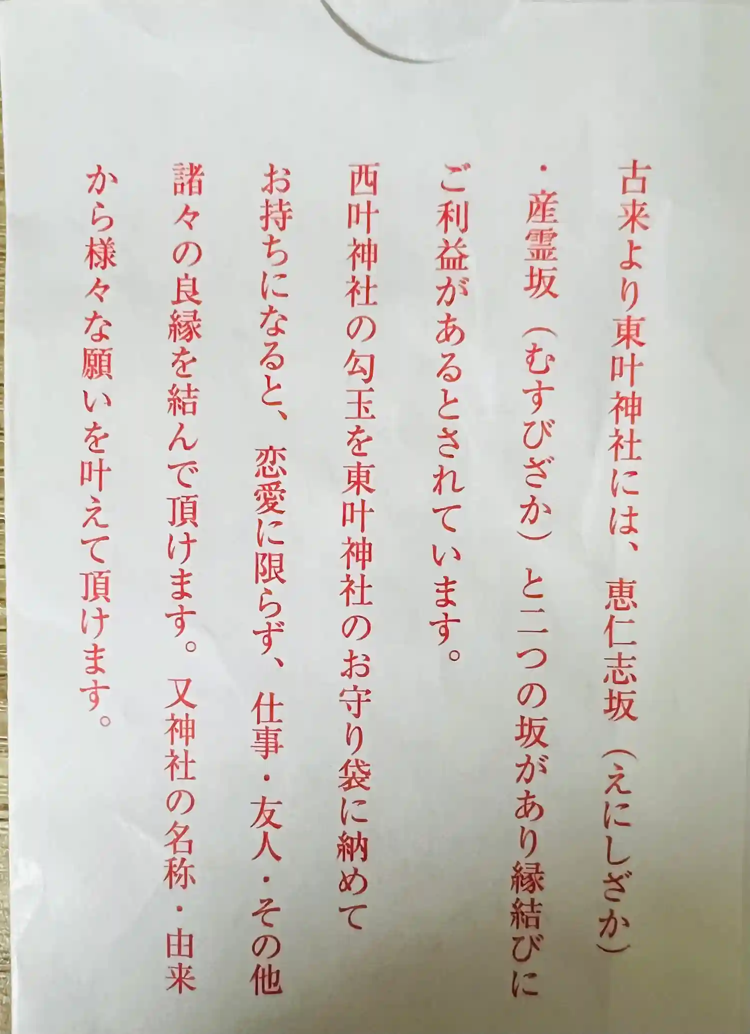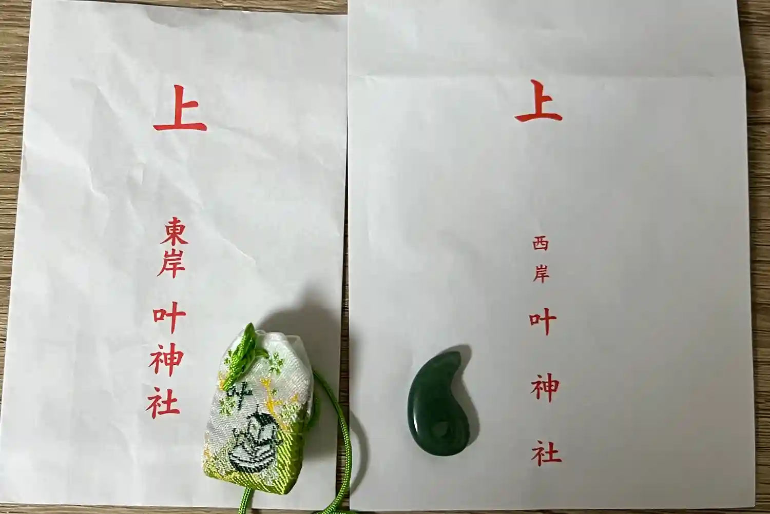 東西の叶神社でいただいた挟み紙。一対になっています☺️