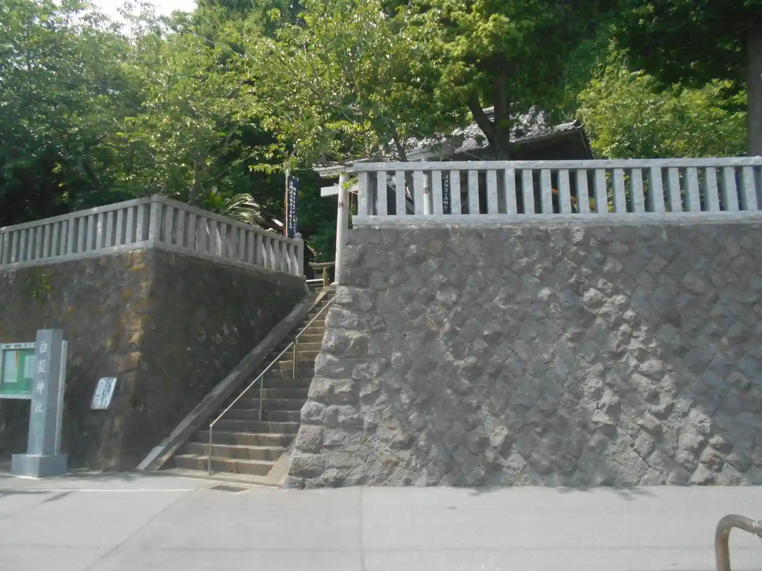01) 野比「白髭神社(しらひげじんじゃ)」 参道階段登り口を、向かって右斜め前方から。