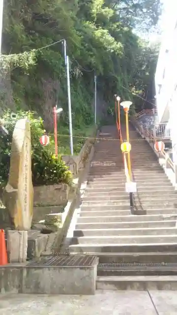 豊川稲荷の横須賀別院とあるが、札所、成田山の関連もあり。かなりの断崖絶壁に建っています。ベンチはわりとたくさんありましたが、お賽銭箱の前の鳴らすあれの紐というか綱がボロくてちぎれそう(汗)。鳴らすための棒も、かろうじて音鳴らせるくらいな距離。
