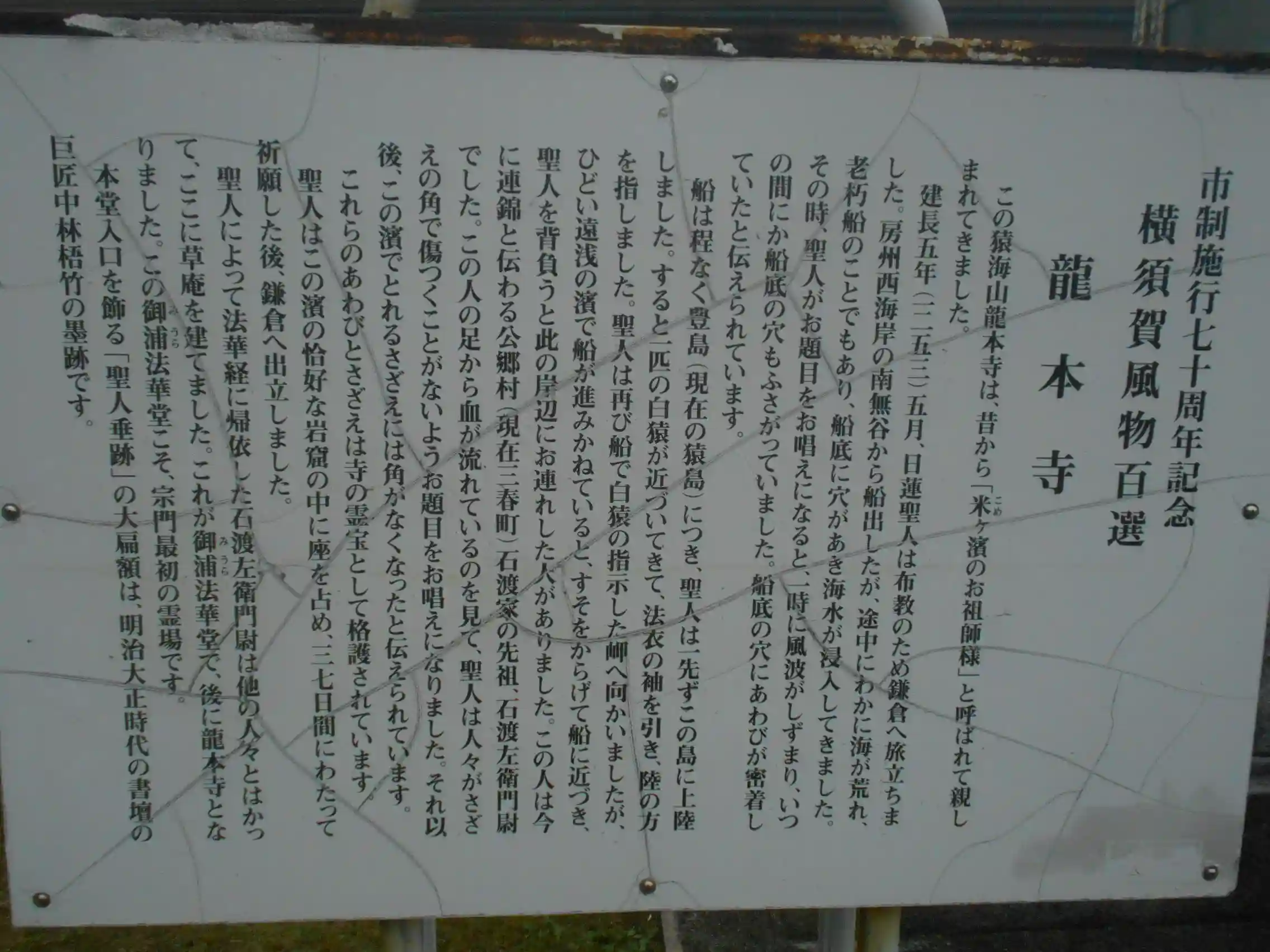 05) ” 市制施行七十周年記念 横須賀風物百選 龍本寺 ” 解説ボード