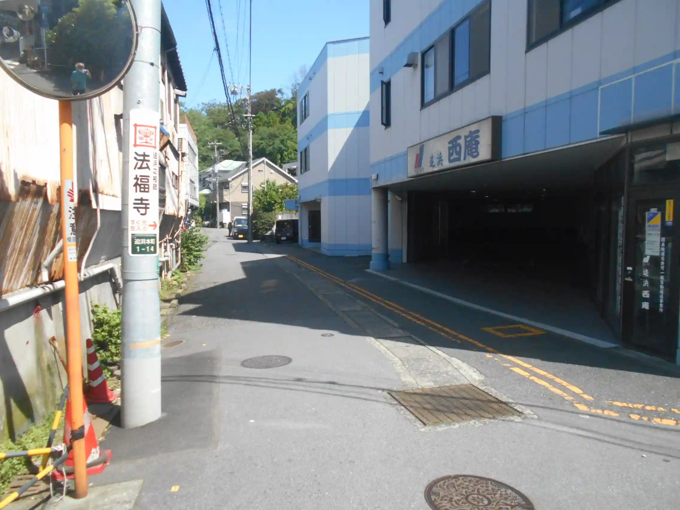 (水色と白の建物は葬祭場 ” 追浜 西庵 ” だが、