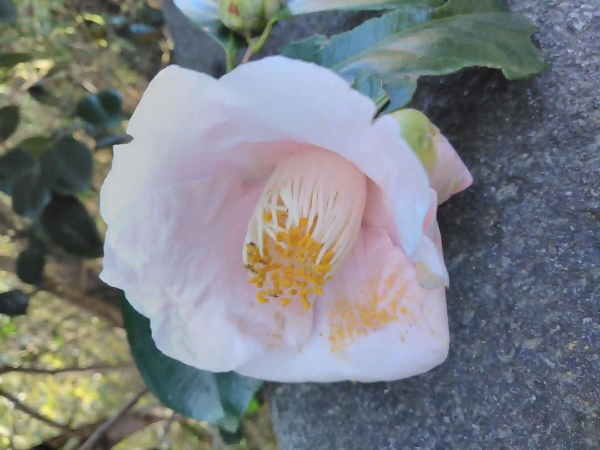 階段途中で椿が咲き誇っていました。