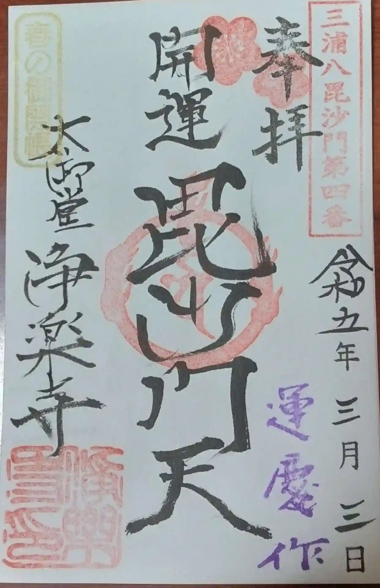 毘沙門天の御朱印です。