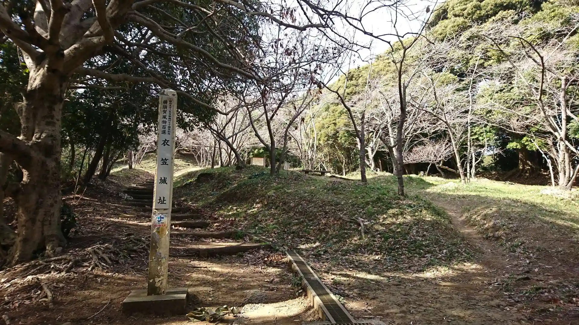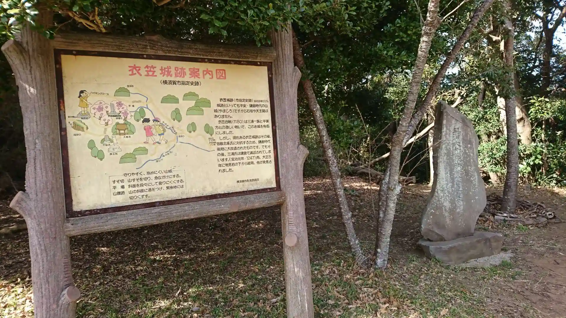 本堂の横の階段を上って行くと衣笠城址に行けます。