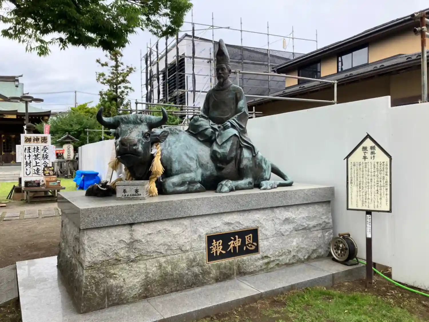 撫で牛と道真像