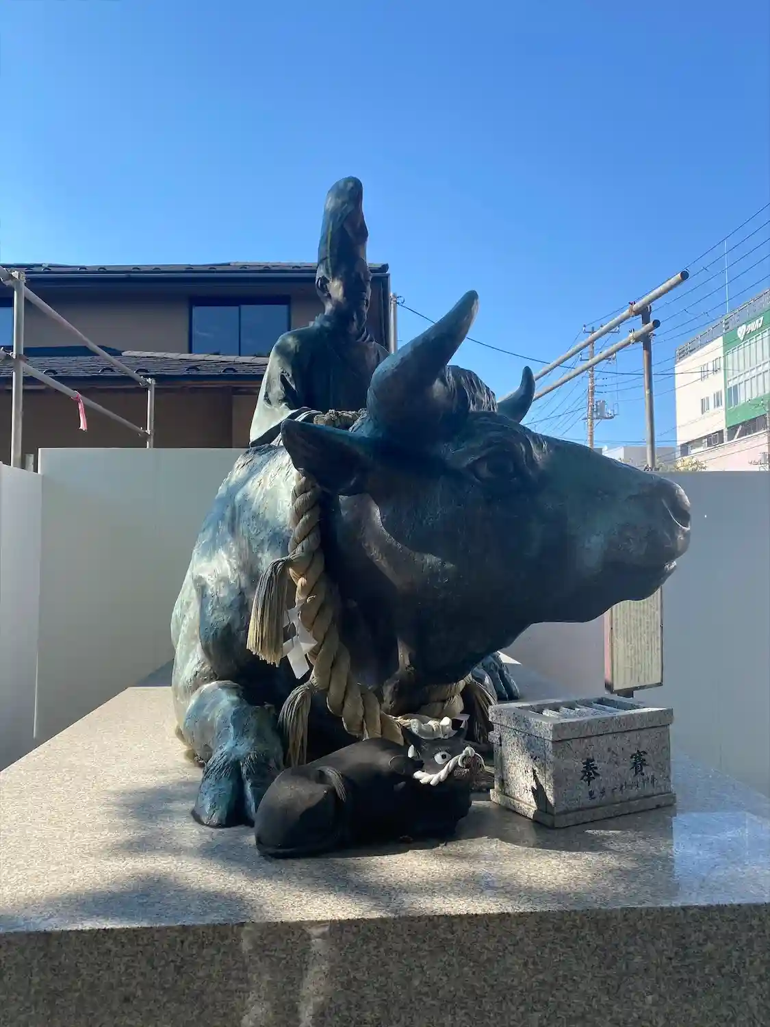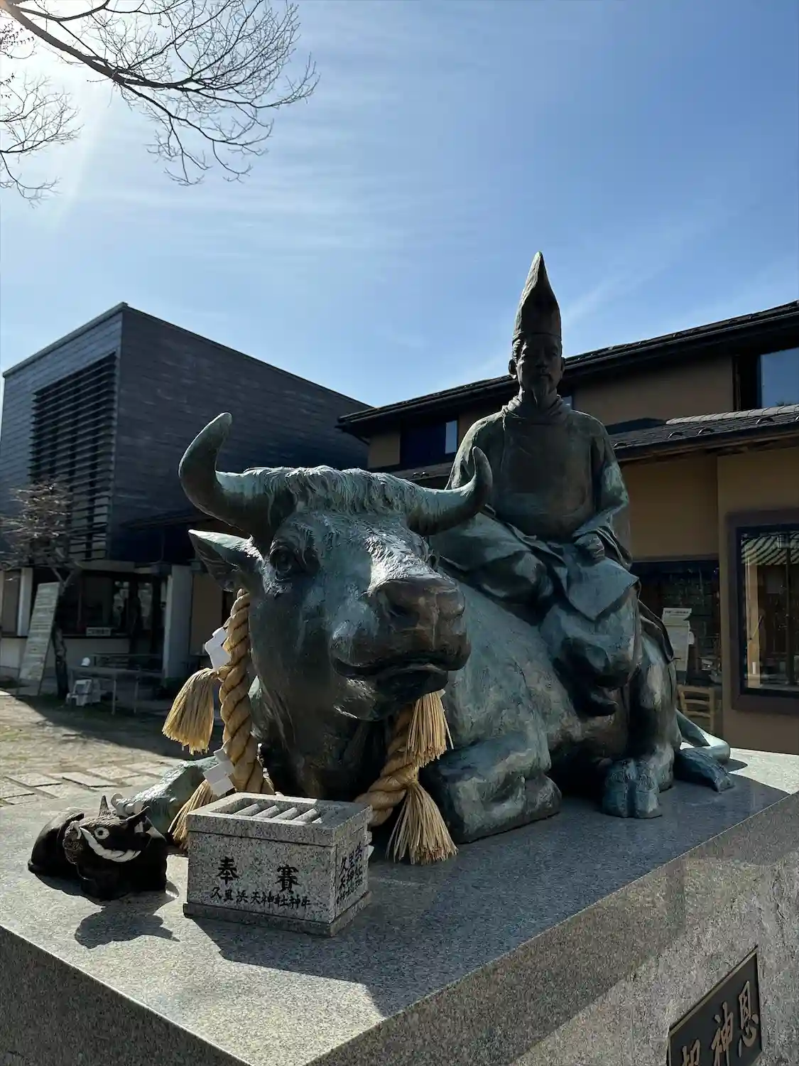 牛さんと菅原道真公の銅像
