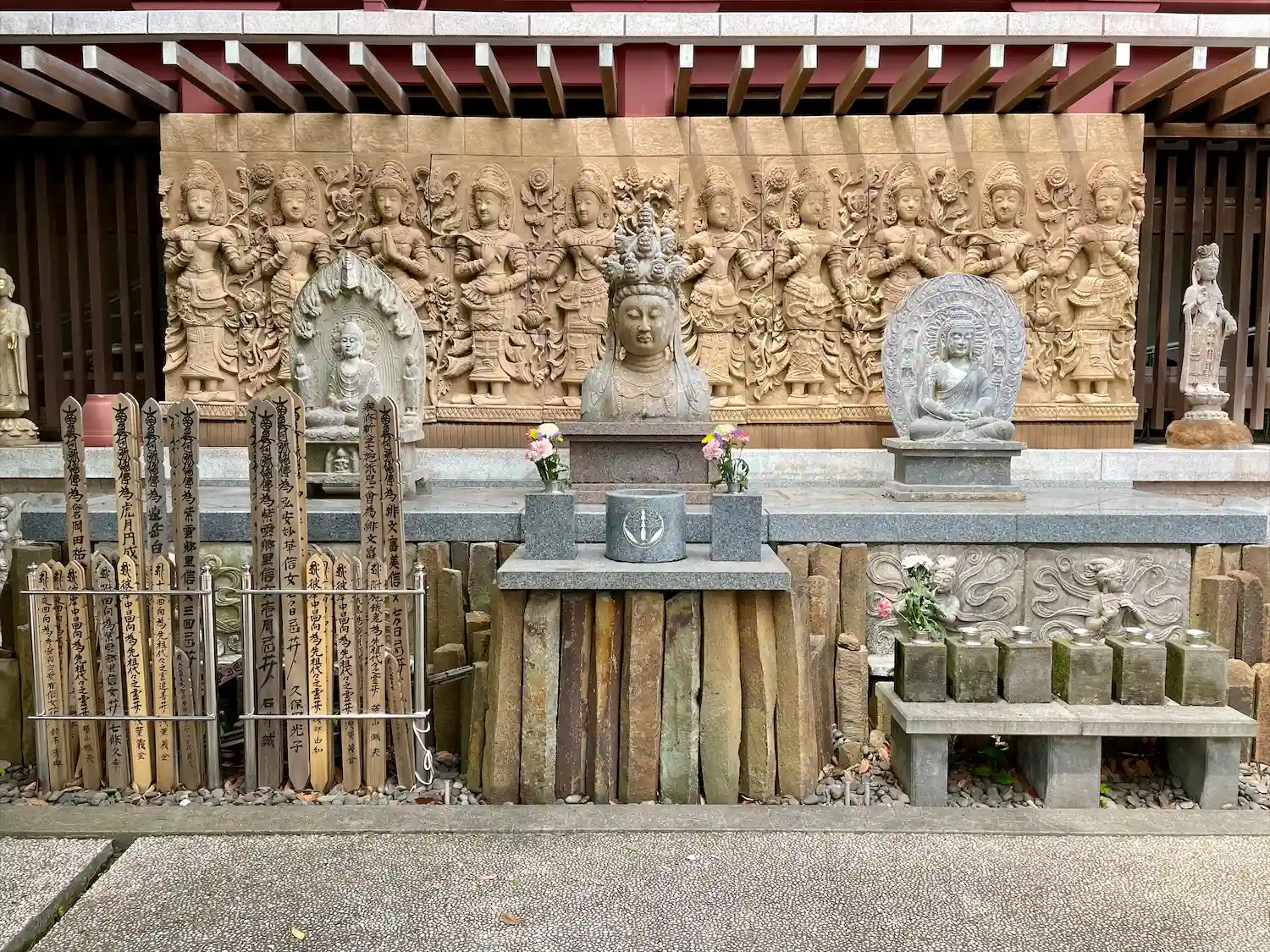 本堂左下、十一面観音のレリーフです。