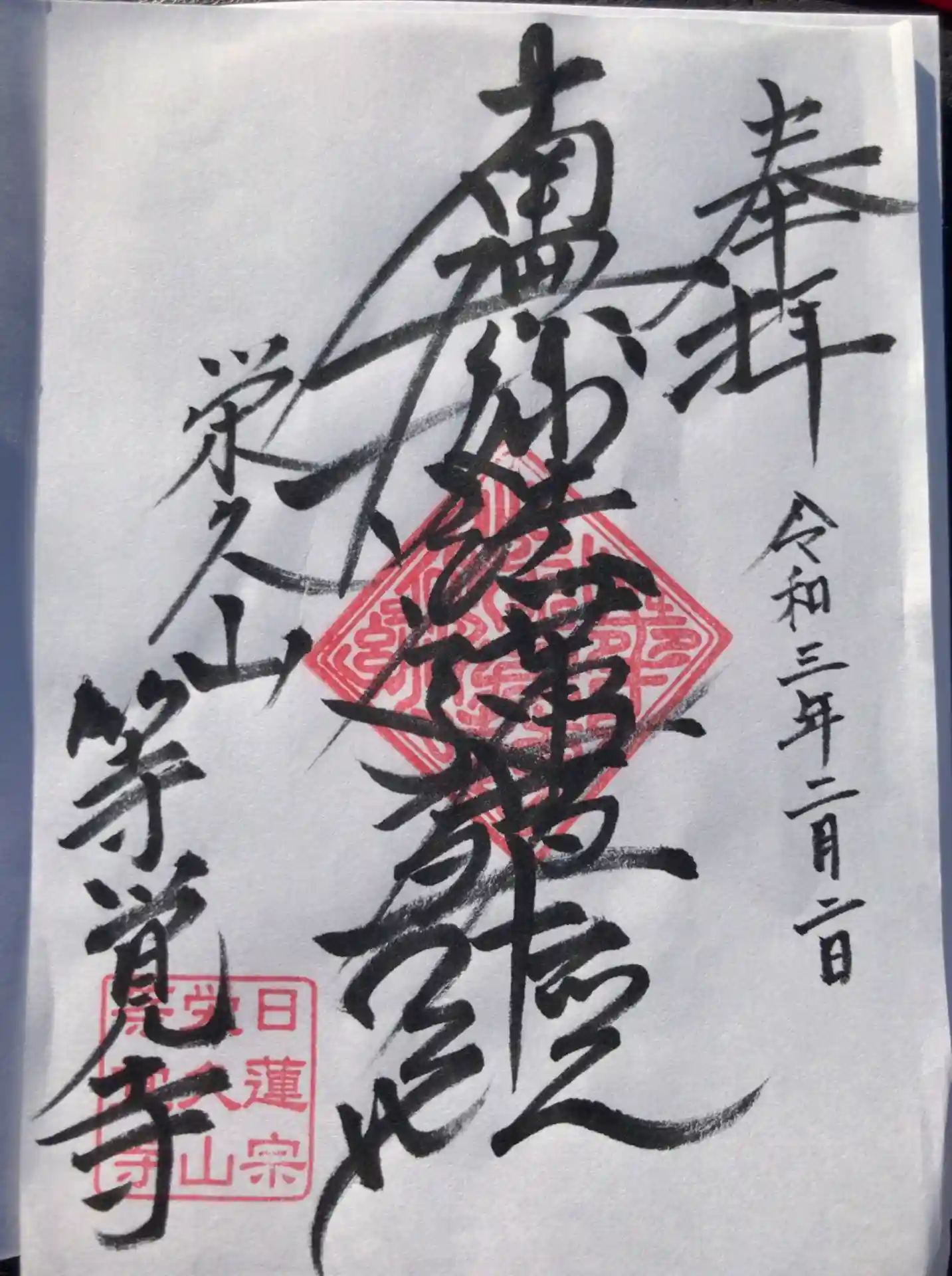 御朱印ではなく御首題を頂きました。