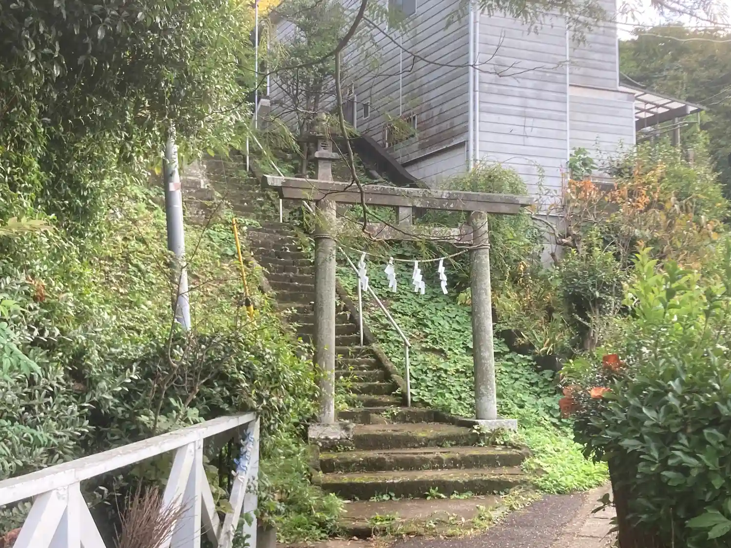 手すりがついているが、急な石段で足元がわるいので注意が必要。