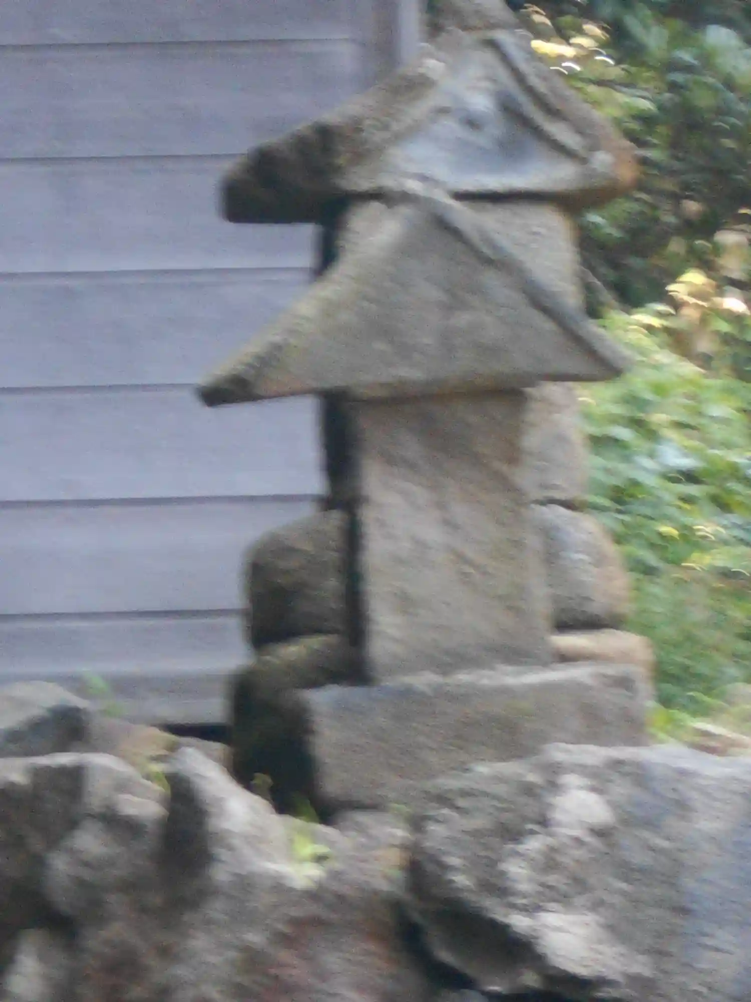 塀板各々の15mmほどの隙間から覗いたら 他の石祠二基も発見。