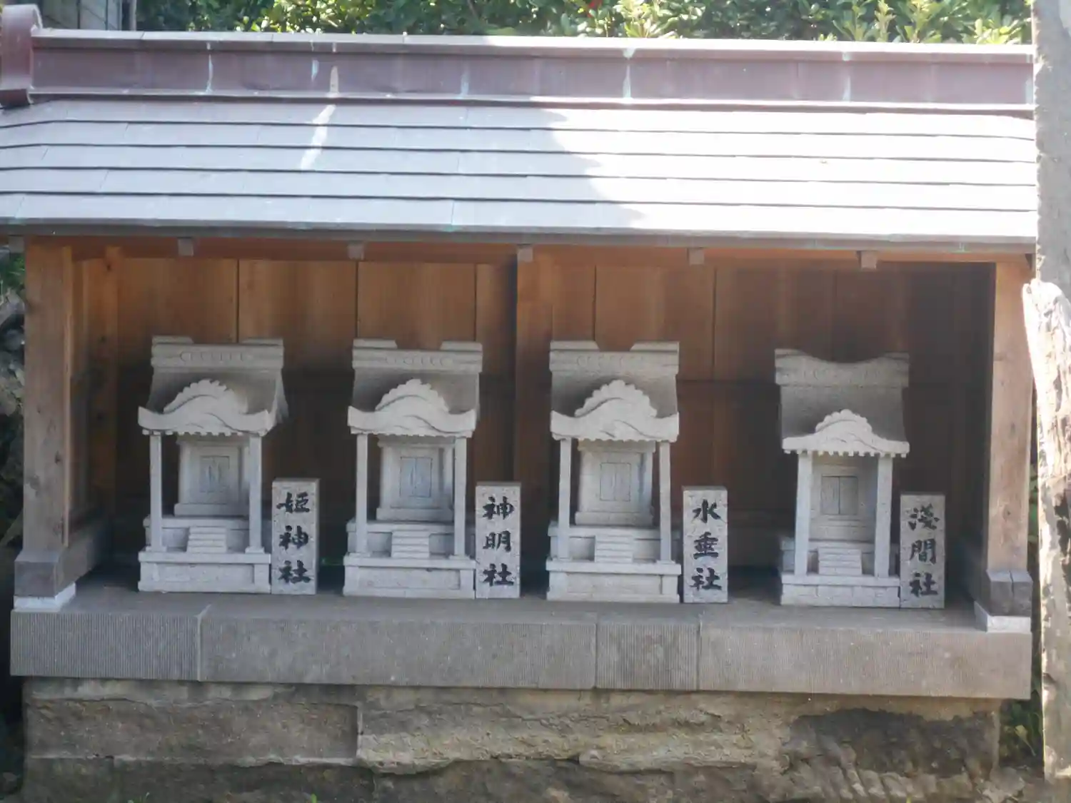 向かって左から ’ 姫神社 ’ 、 ’ 神明社 ’、 ’ 水垂社 ’、 ’ 浅間社 ’。
