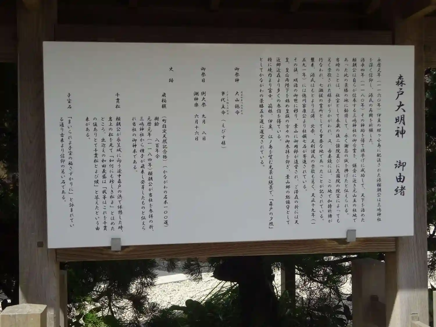 05-2) ” かながわの名木1000選 森戸大明神のビャクシン ” 解説ボード