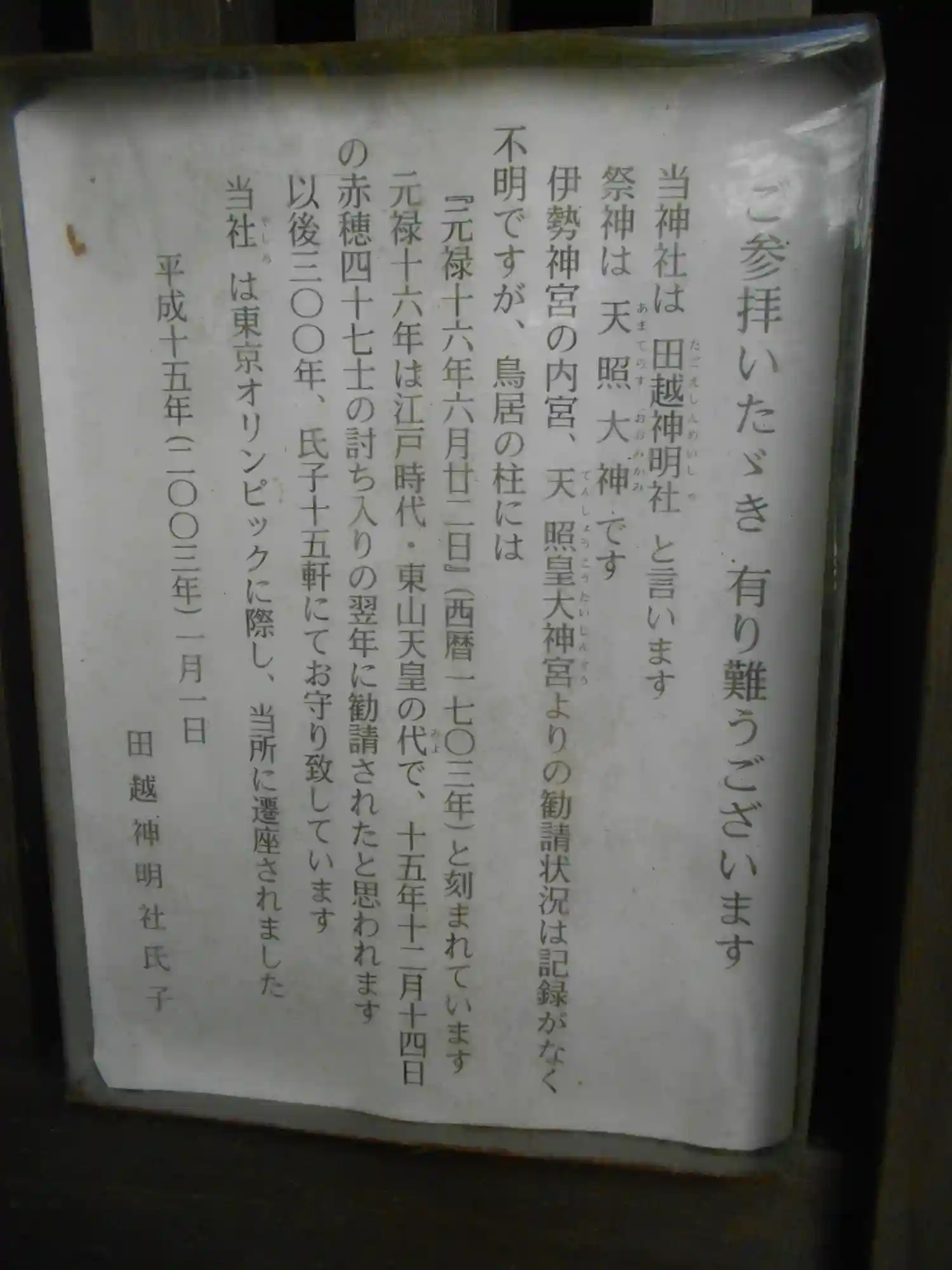 平成十五年(二〇〇三年)一月一日 田越神明社氏子