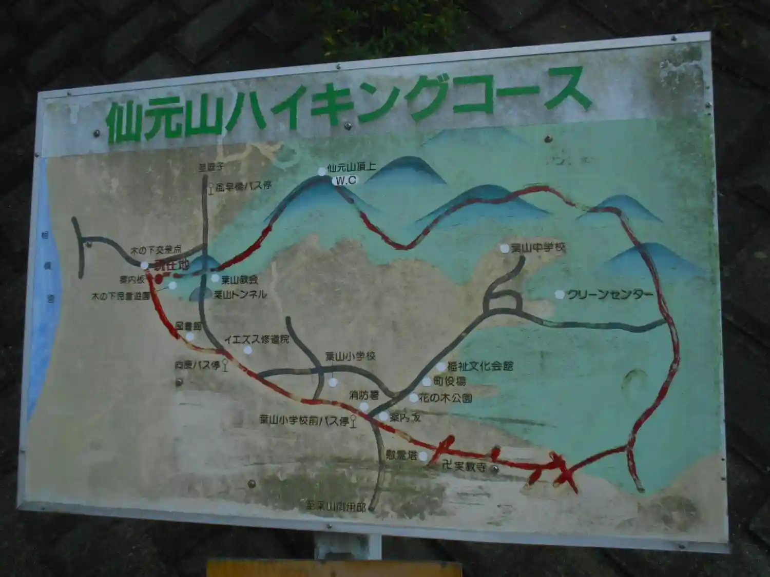 登り口道路からの目印 ’” 仙元山ハイキングコース ” 案内図