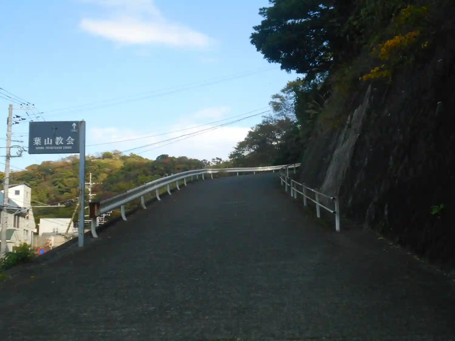 更に数十m進むと平地になり「葉山教会」と駐車場が在り、