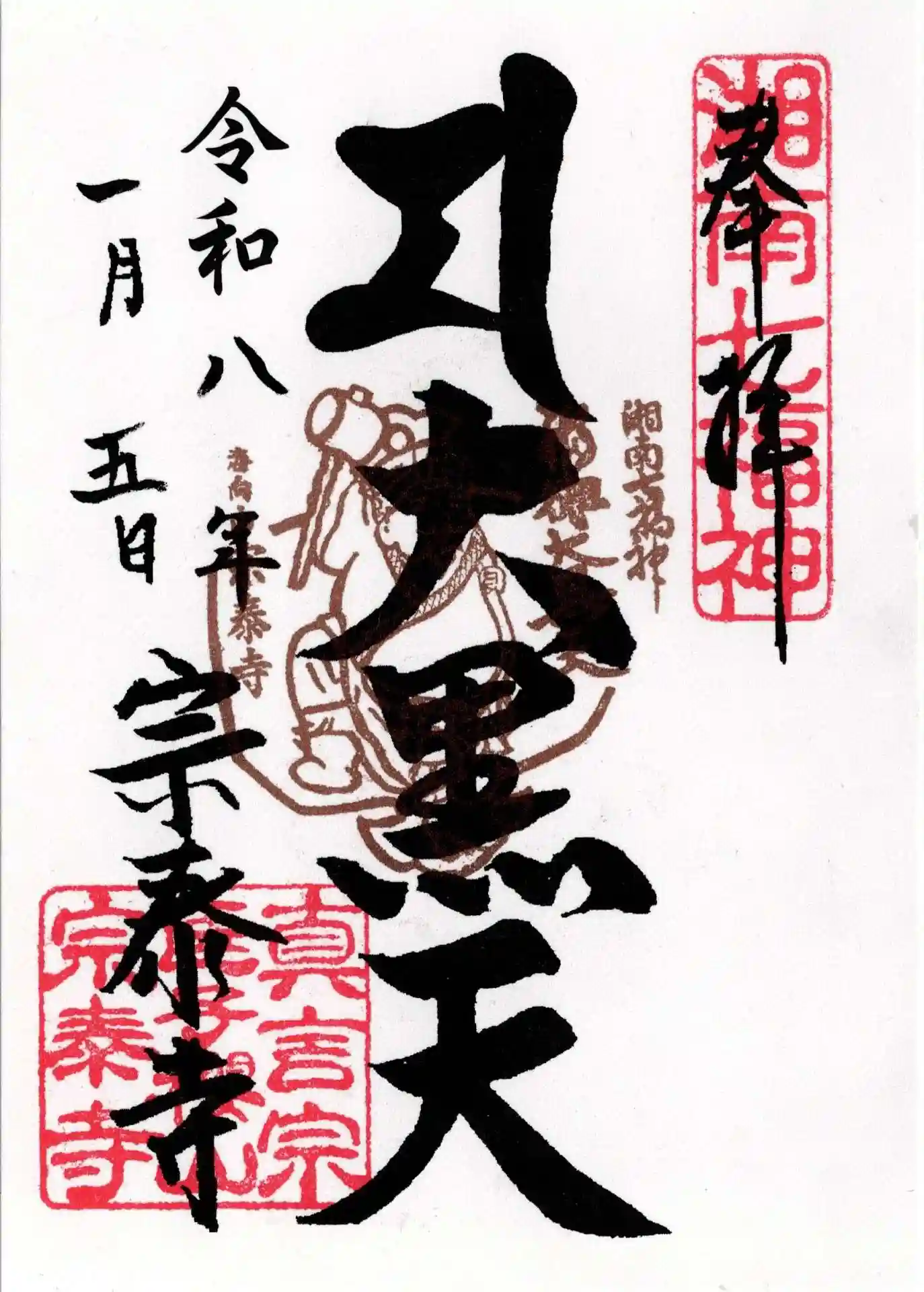 参拝の証としていただいた御朱印は書き置きでしたが、お寺の方が非常に丁寧に私たちの御朱印帳へ貼ってくださいました。その細やかなお心遣いに触れ、宗泰寺の温かいおもてなしの心を感じることができました。新年の清々しい空気の中、大黒天様との出会い、そして温かいご対応に心癒される、思い出深い参拝となりました。
