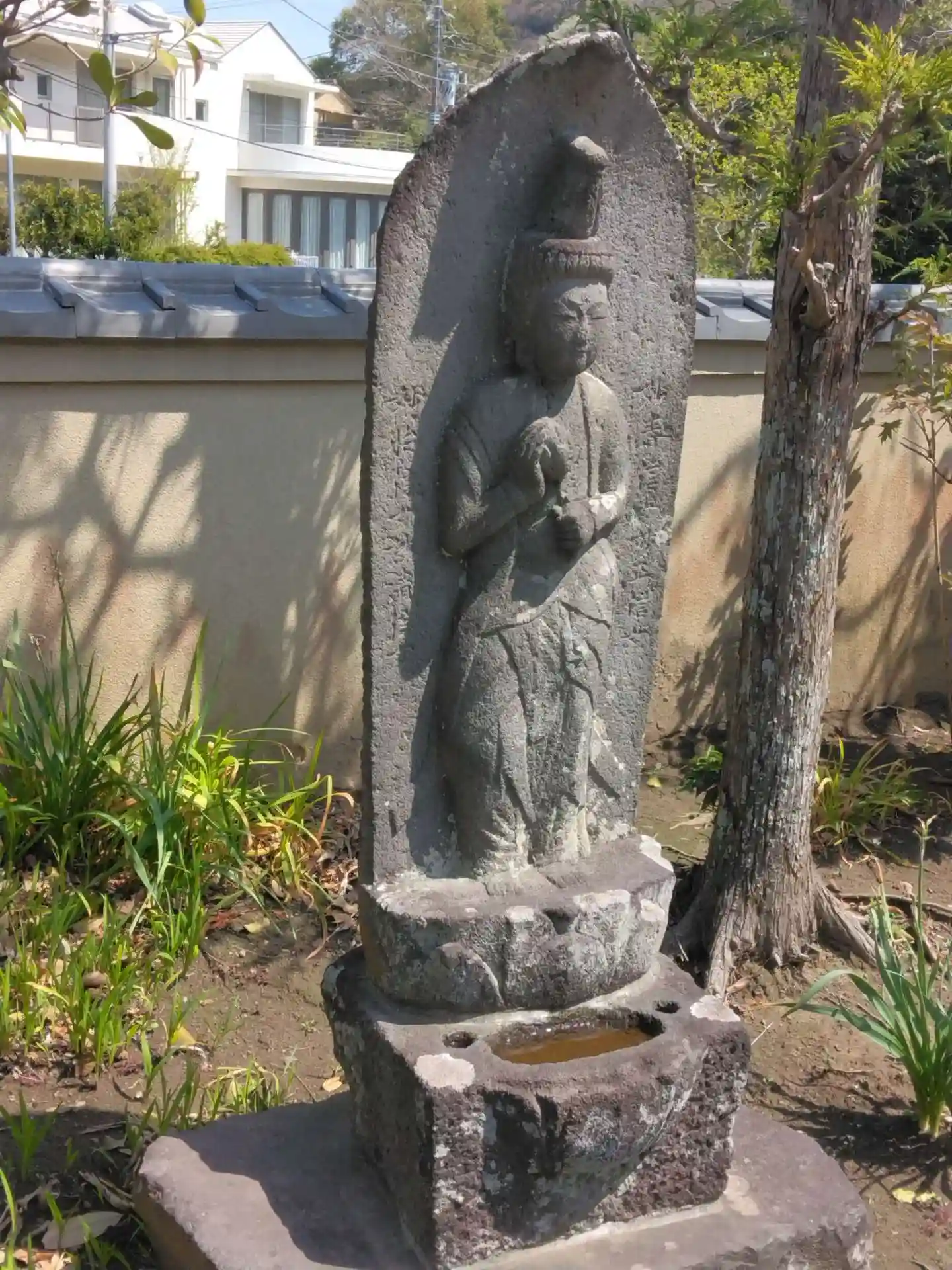 檀家さんが彫った石像で、使われた石は基礎部分で実際に使われたものだそう。