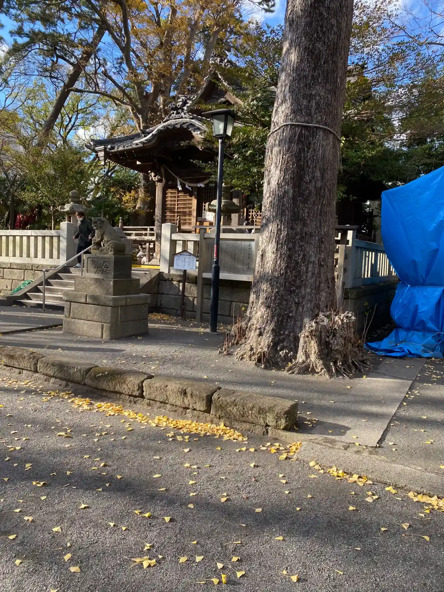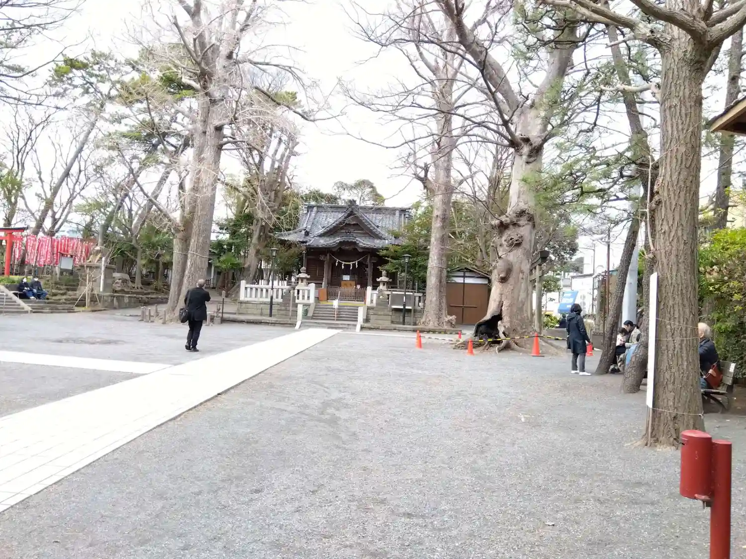 02-1) 落葉が進んだ大銀杏を社殿方向遠景