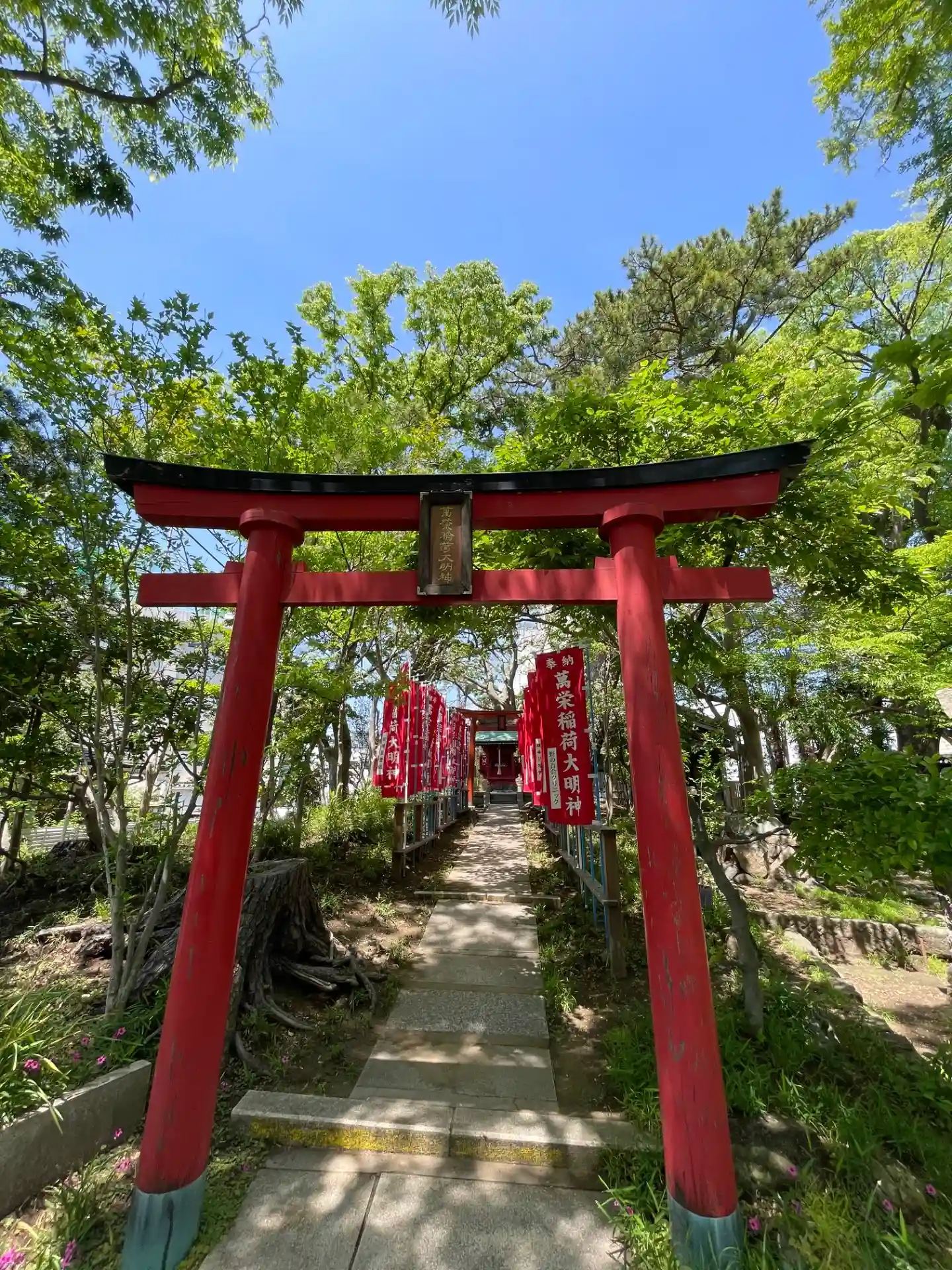 「萬栄稲荷大明神(ばんえいいなりだいみょうじん)」 一の鳥居