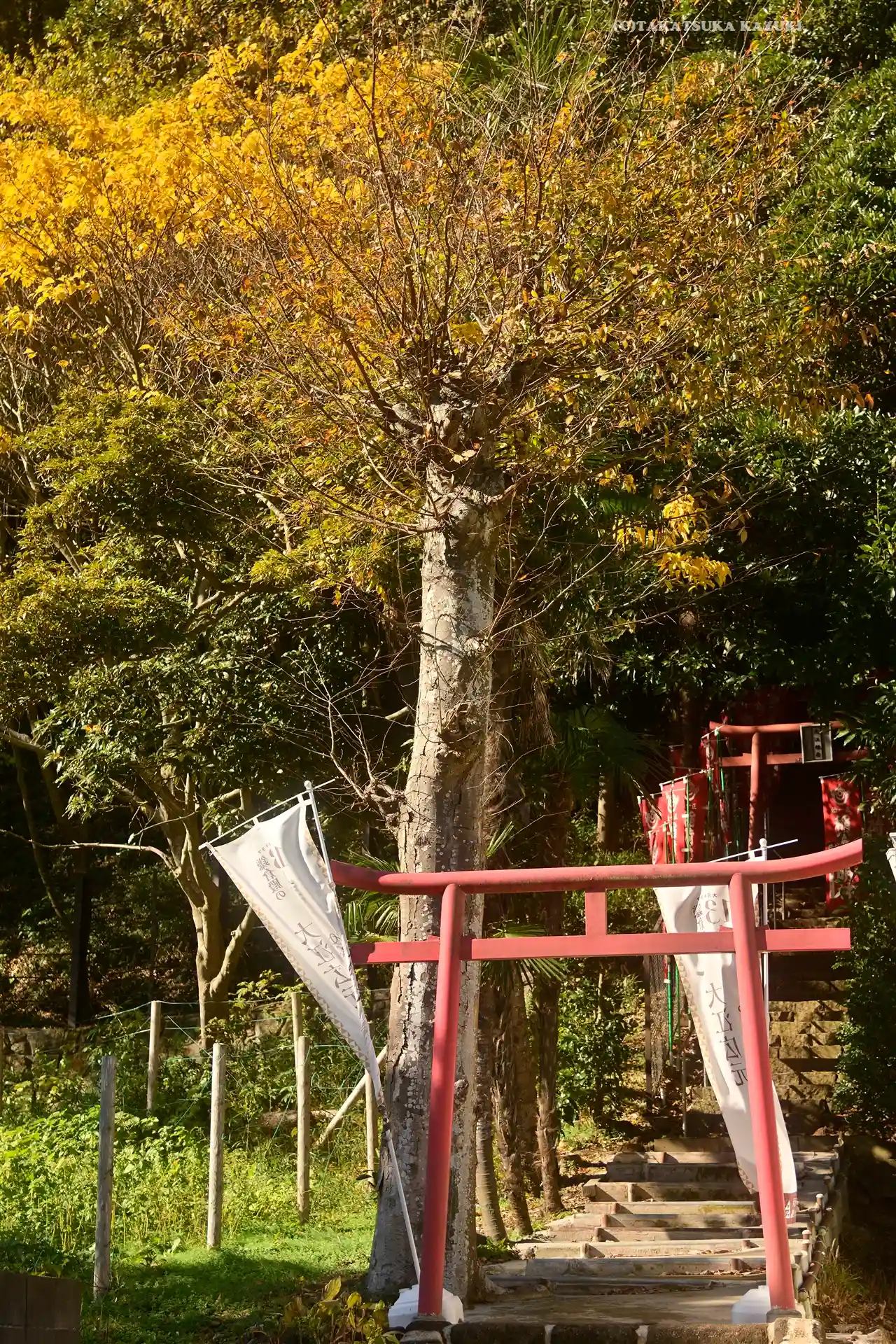 実質的に 路地と参道階段手前の平場は二軒の民家さま用。