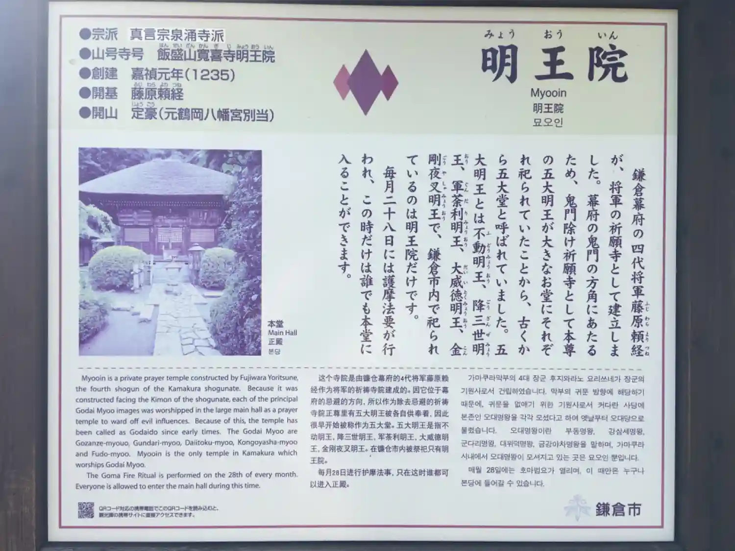 | 開山・開基 | 発願:鎌倉幕府将軍 開基:藤原頼経 開山:阿闍梨定豪 | |