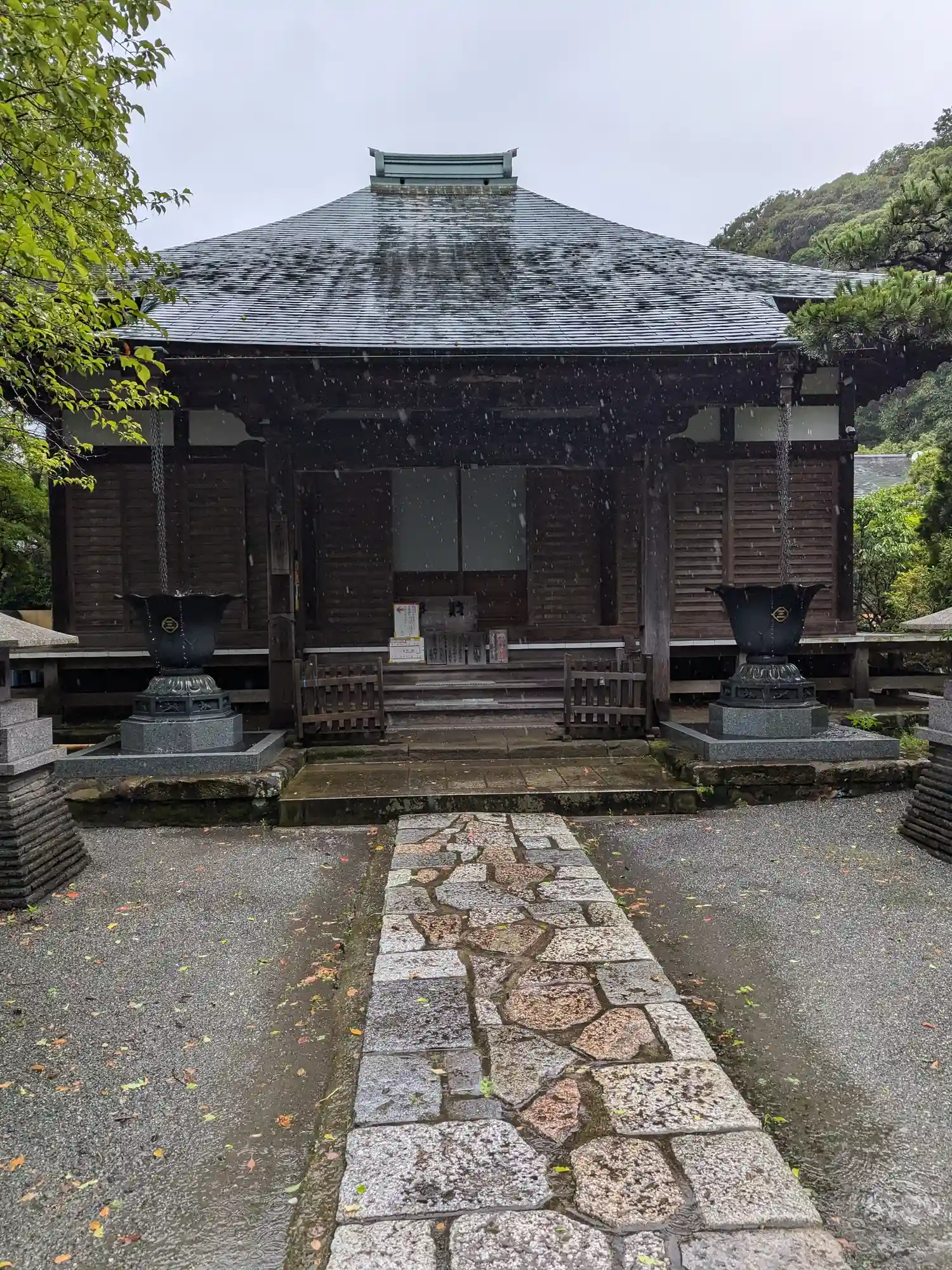 鎌倉六阿弥陀霊場第六番札所。大雨の中、直書きの御朱印を拝受。鎌倉駅からバスで20分ほどでした。