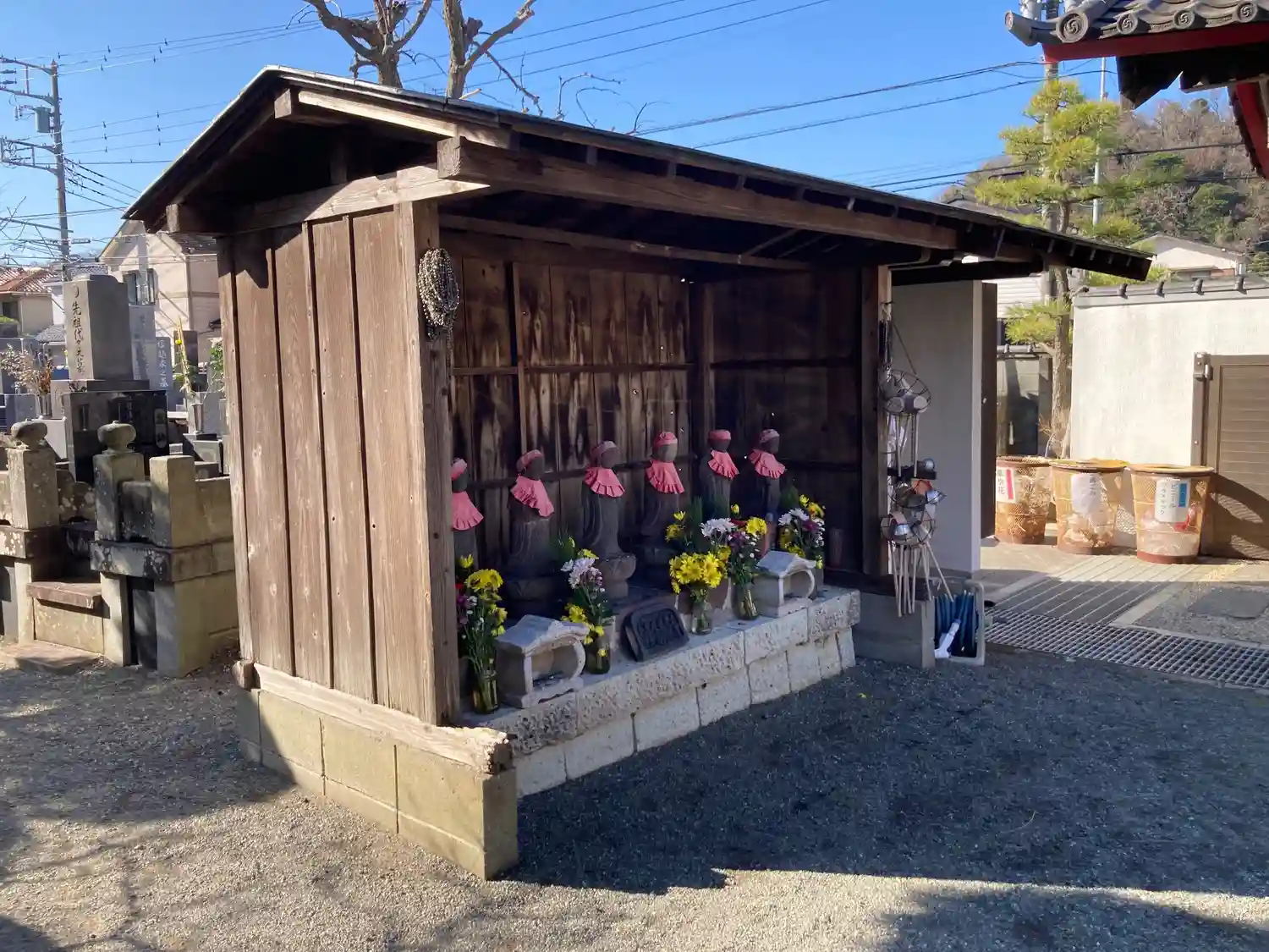 05) 山門を潜って直ぐ右側の、’ 六地蔵 ’ と 写真右下の小さな仏像。小さな仏像のズームアップを撮らなかったことを悔やむ。 _ 20.02.02 逗子「東昌寺」