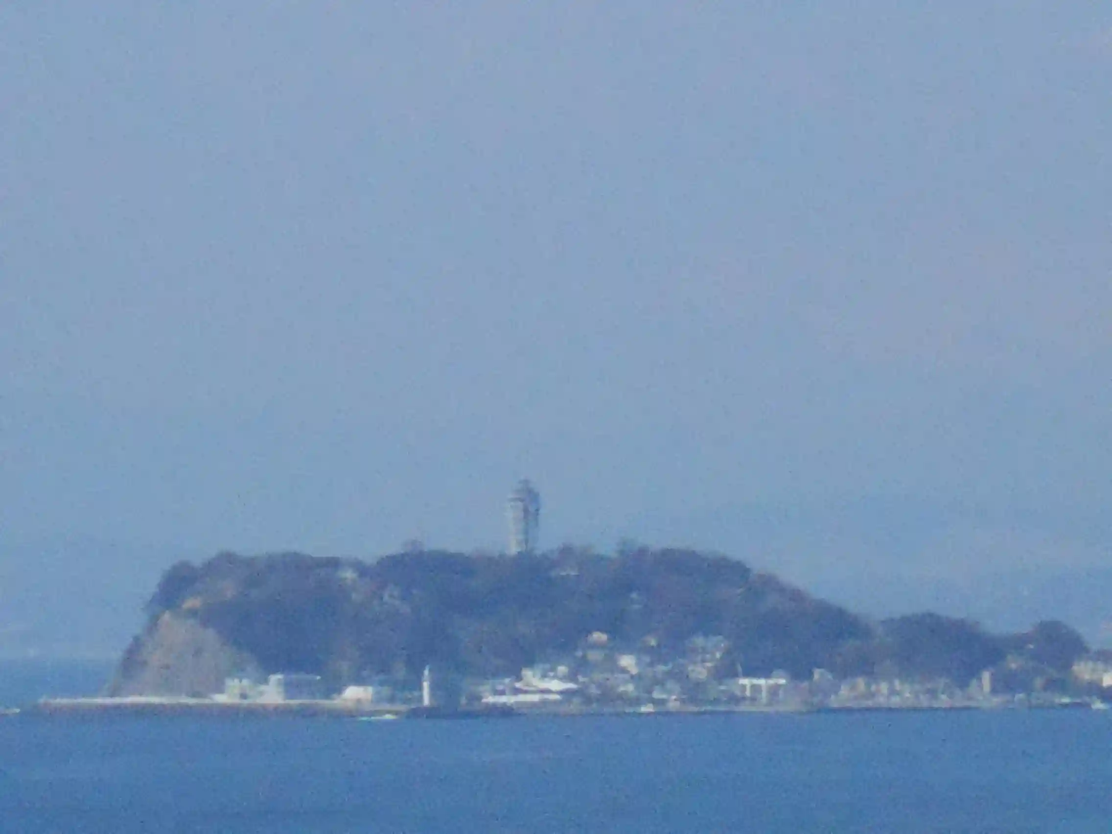 「天照大神社」裏参道鳥居周辺からの眺望。手前:リヴィエラ逗子マリーナ、奥:江の島