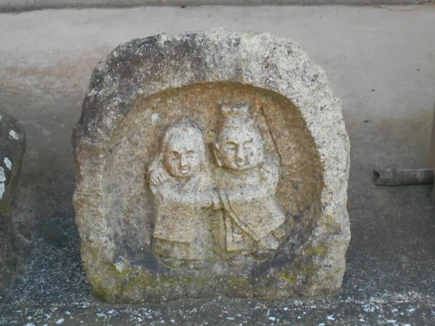 02) 路地へ入って直ぐの階段と道祖神。