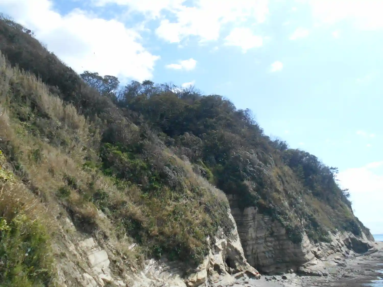 03-2) 左から右へのつもりで撮ったうちで、左方向の干潮時の海底岩場をズームアップ。