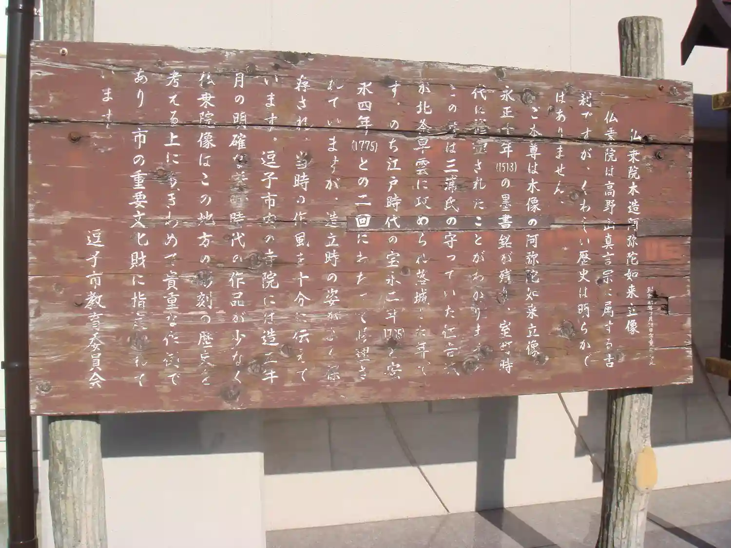 ” 逗子市指定有形文化財(彫刻) 木造 阿弥陀如来立像 ” 解説ボード