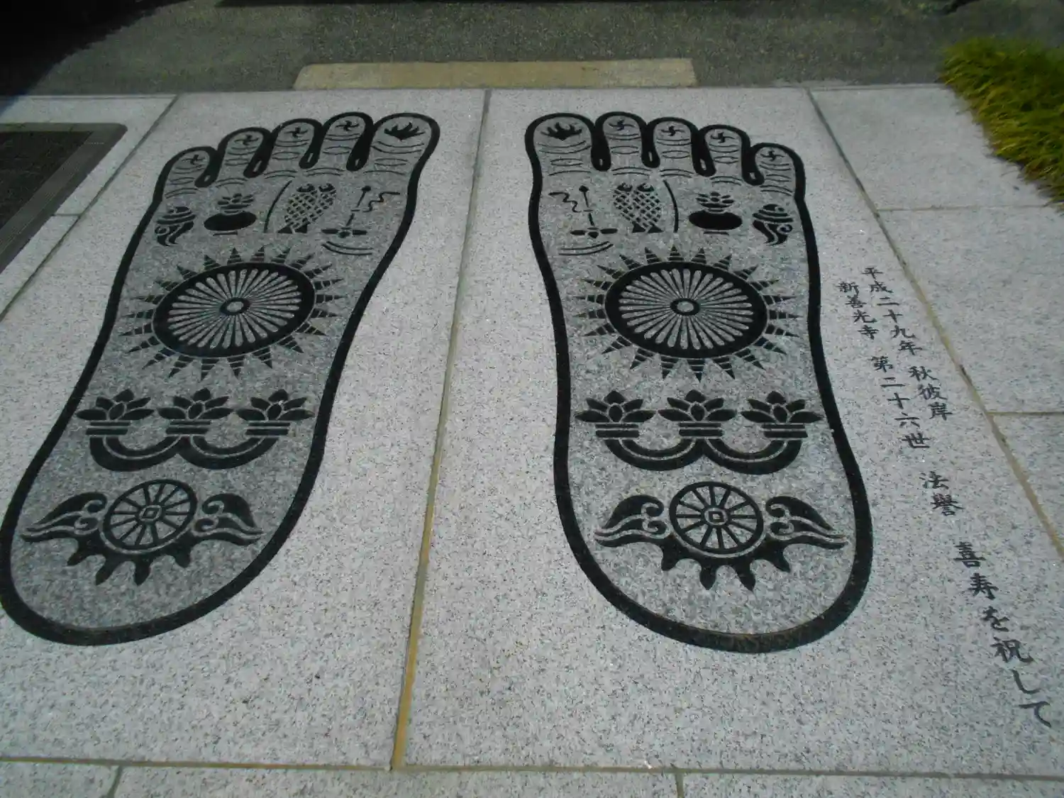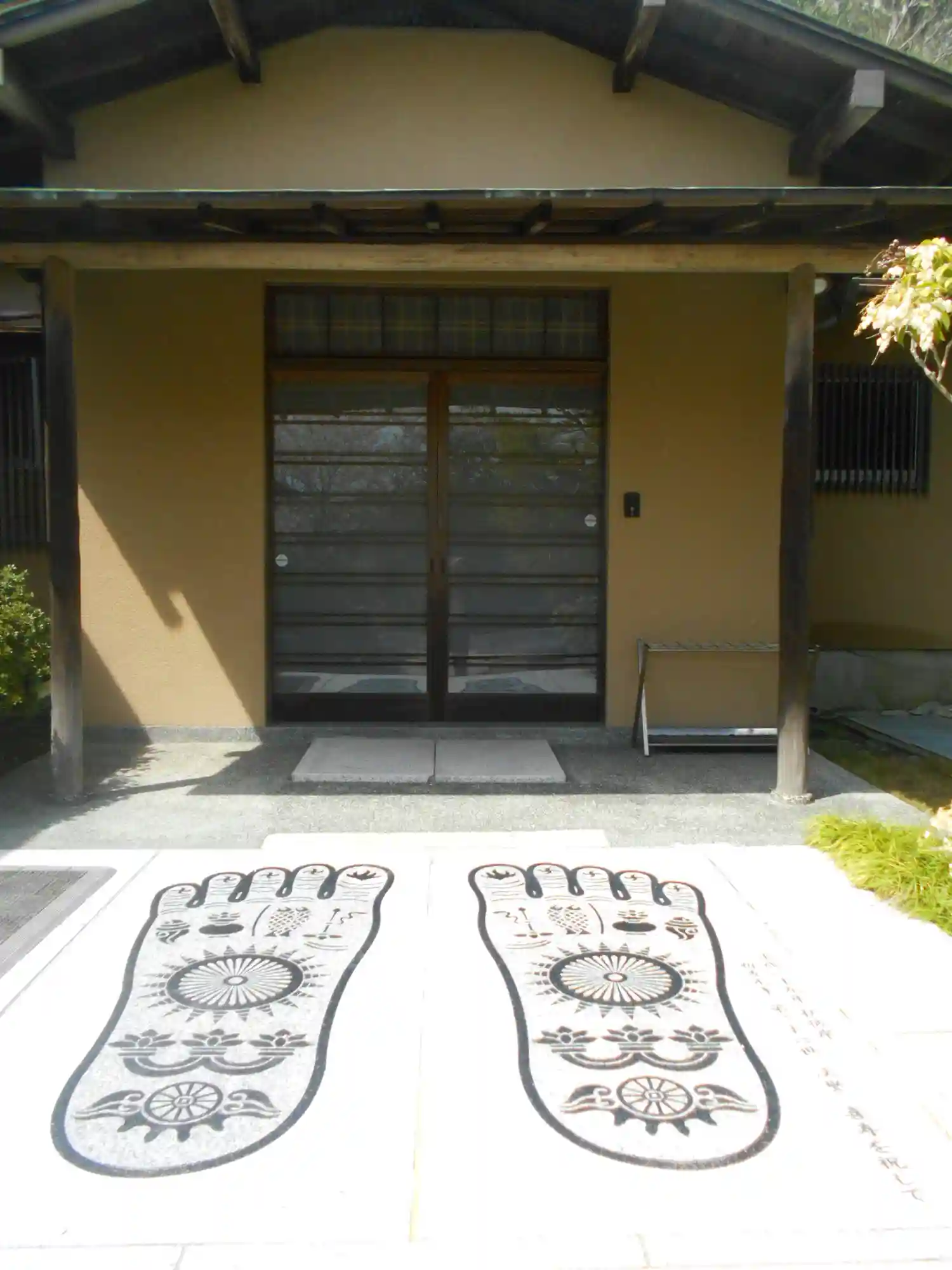 本堂の左隣、庫裏の前にある仏足石。