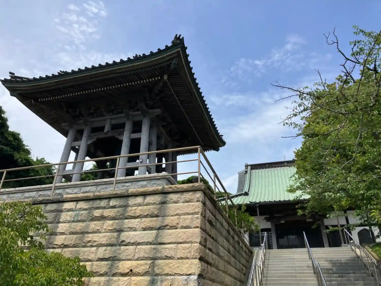 14-1) 本堂前から、鐘楼方向を振り返る。