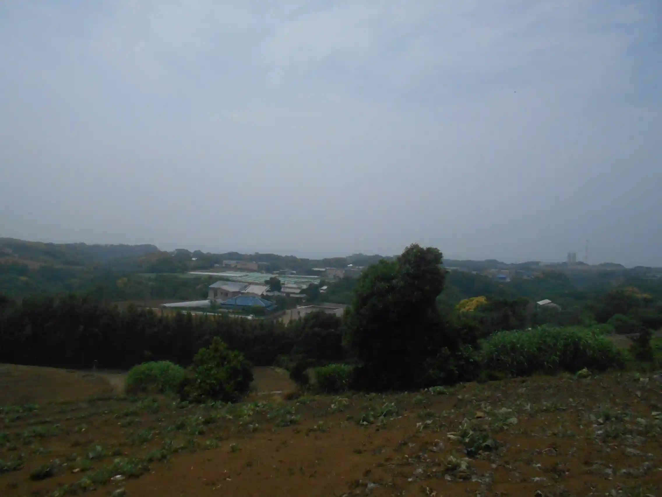 01-2) 鳥居前からの、長閑な風景。 キャベツの収穫が、ほぼ終り。