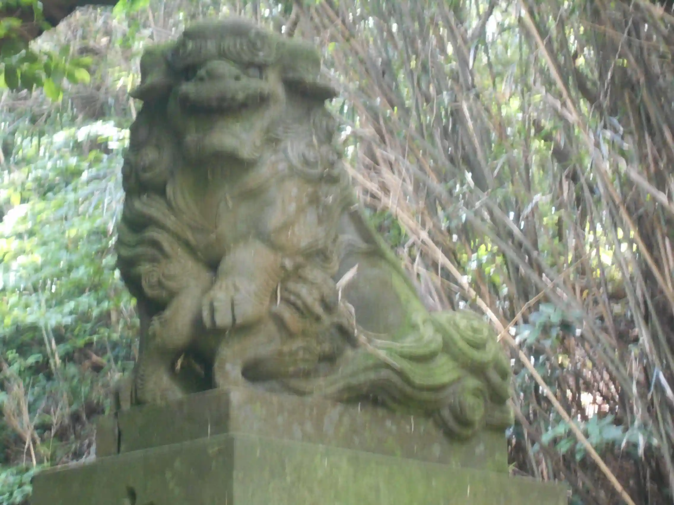 07) 参道階段を登った堂の前、左右に在るうちで右側の狛犬。