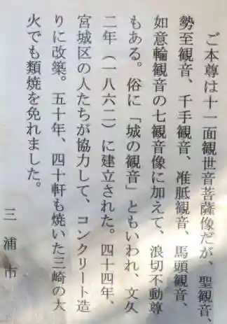 | ご本尊 | 十一面観世音菩薩、千手観音、聖観音、勢至観音、准胝観音、馬頭観音、如意輪観音の七観音と、浪切不動尊 |