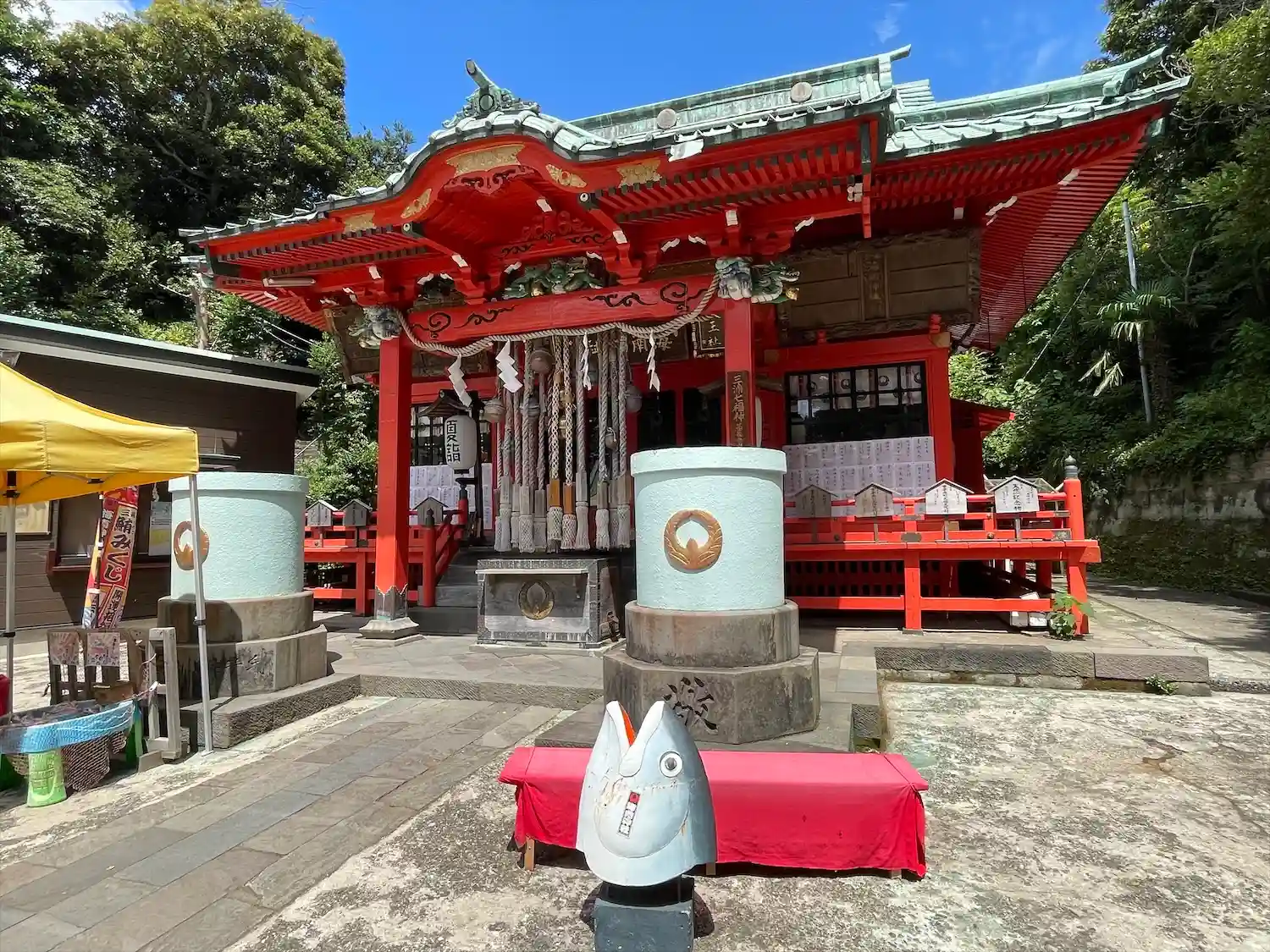 神社に謎のマグロのカマ?のオブジェがあった。御朱印は夏詣のものと境内社・相州海南高家神社のものを書置きでいただきました。