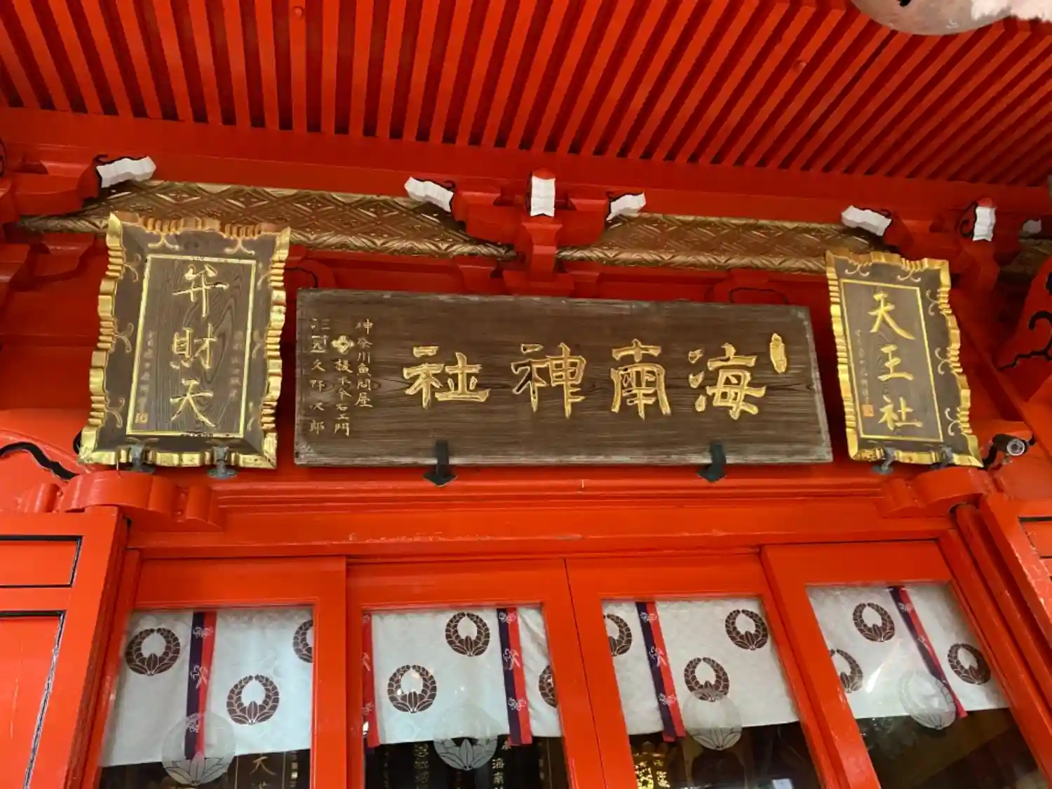 19-4) 拝殿の扁額 ” 海南神社 ” と、