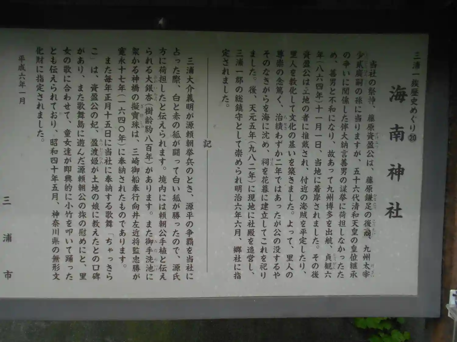 ◎平安時代の頃、三浦為継は社領を寄進し、社頭を改築し、後、三浦家の祈願所とした。